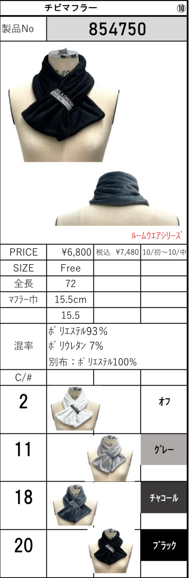 color No.2オフ/No.11グレー/No.18チャコール/No.20ブラック