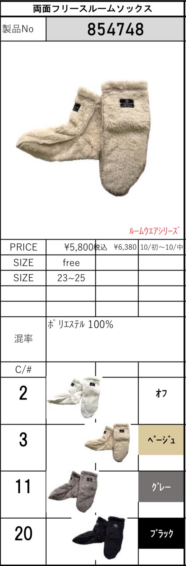 両面フリースルームソックス