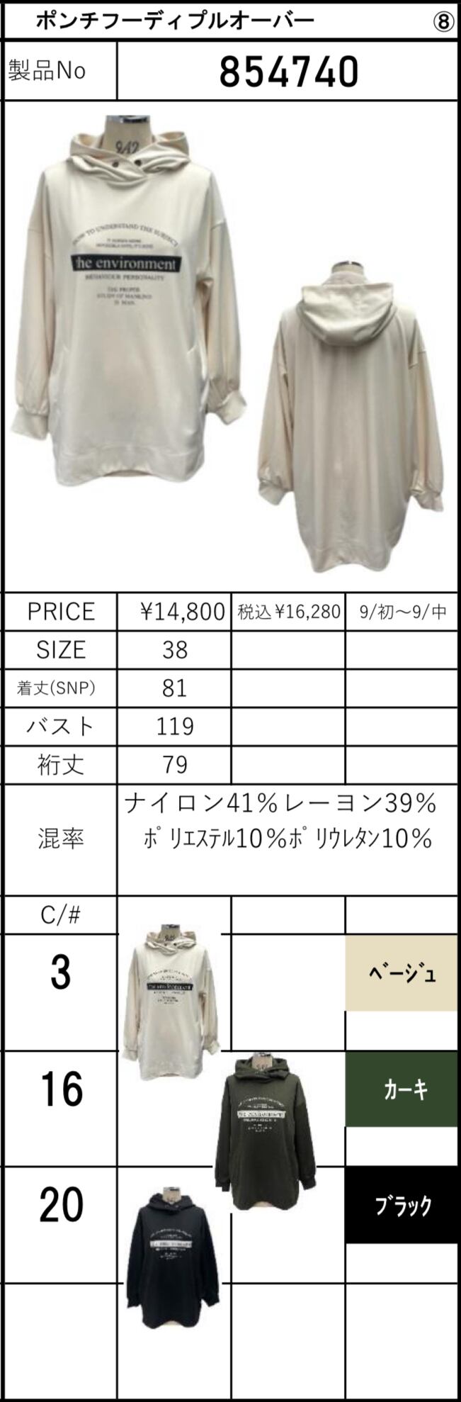 予約販売【 ayane 】ポンチフーディプルオーバー (854740) 9月中お届け