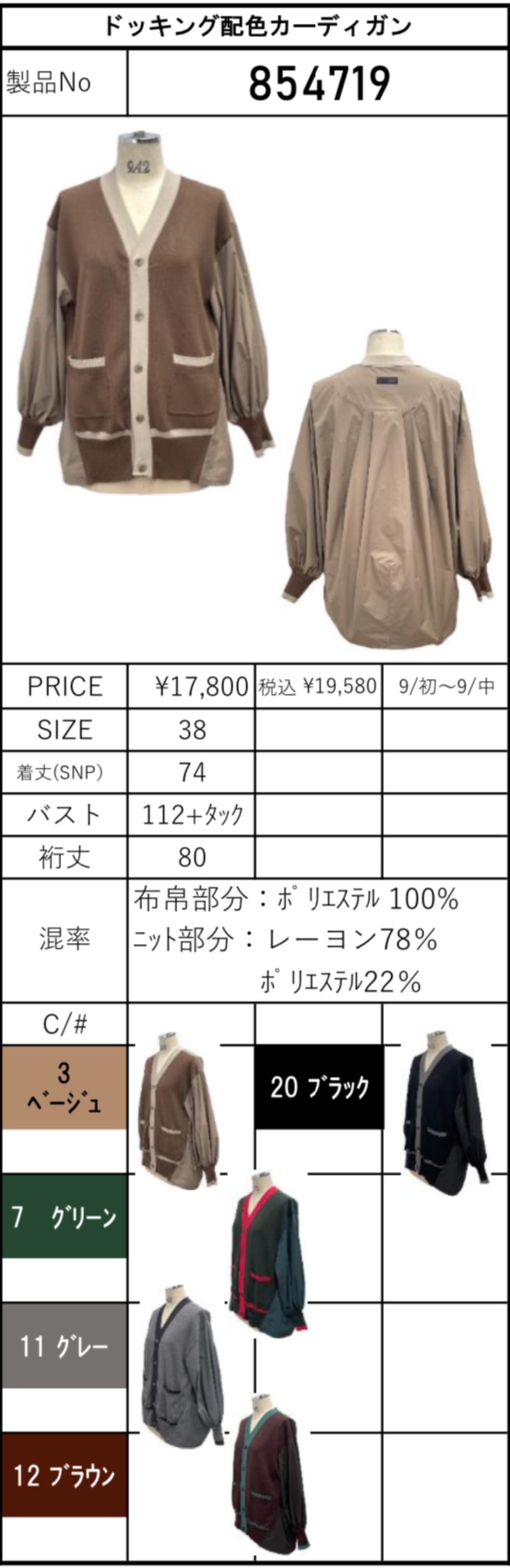 予約販売【 ayane 】ドッキング配色カーディガン (854719) 9月中お届け