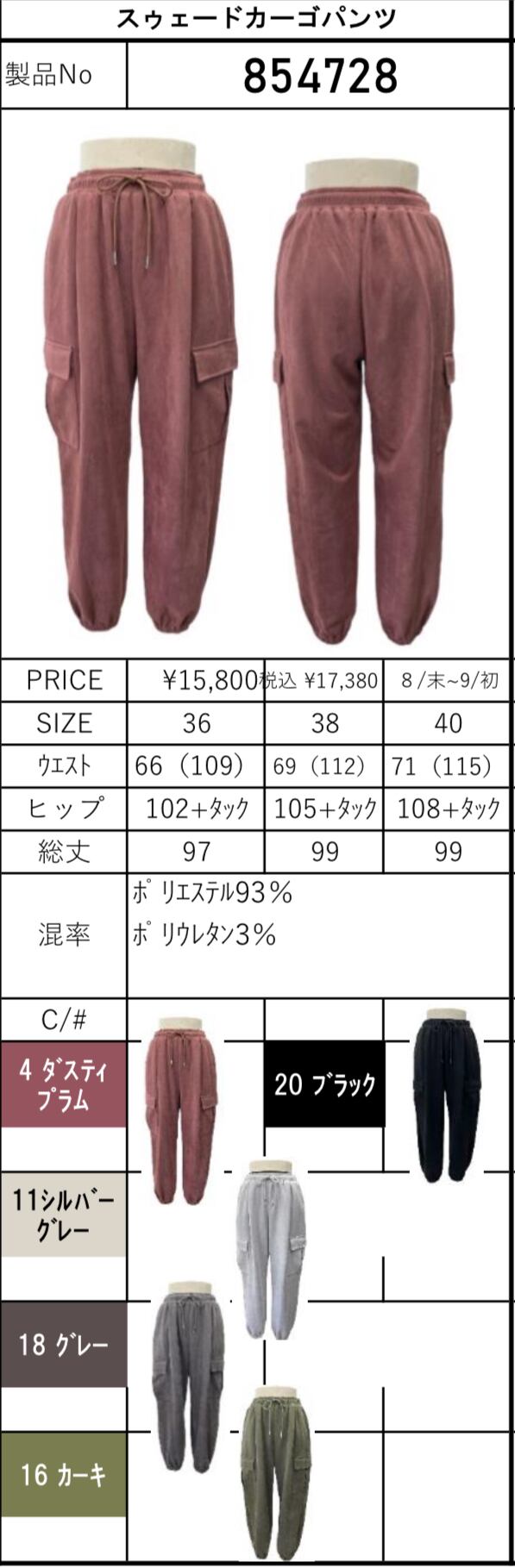 予約販売【 ayane 】スウェードカーゴパンツ (854728) 9月上お届け