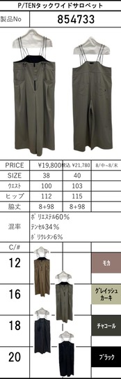 予約販売【 ayane 】P/TENタックワイドサロペット (854733) 8月末お届け