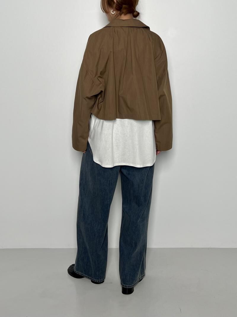 コットンナイロンの素材はカジュアルになりすぎず、特有のしぼ感があり大人っぽくご着用いただけます。