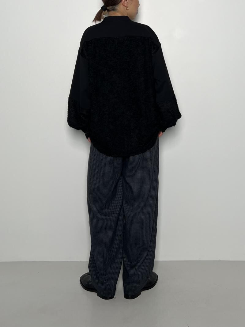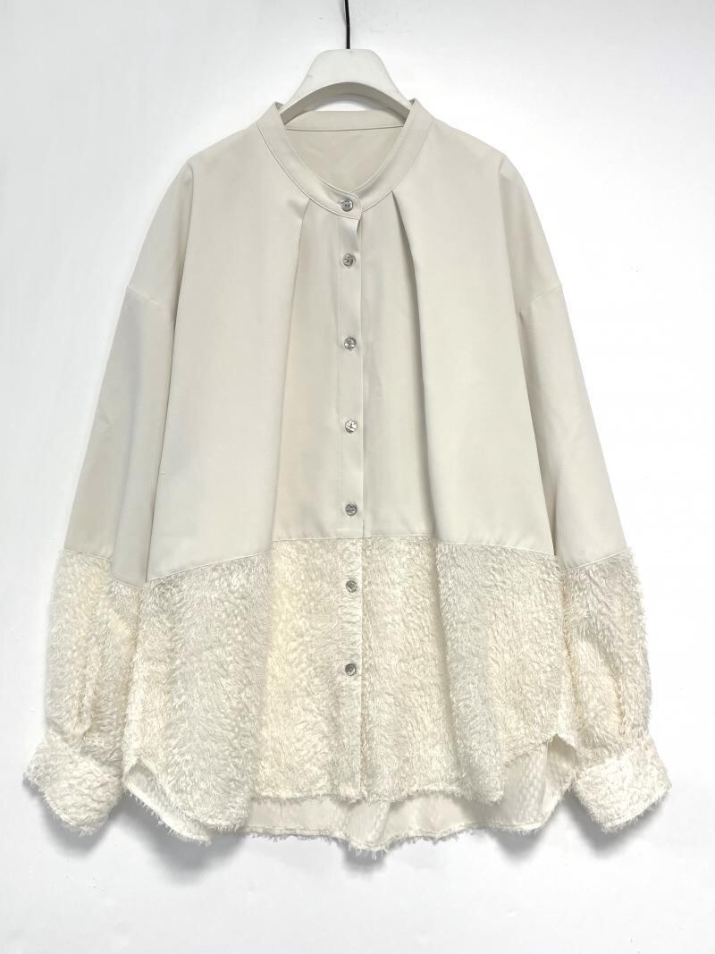 表情感のあるカットジャガード生地で切り替えたブラウスです。