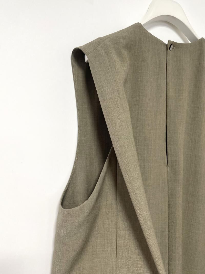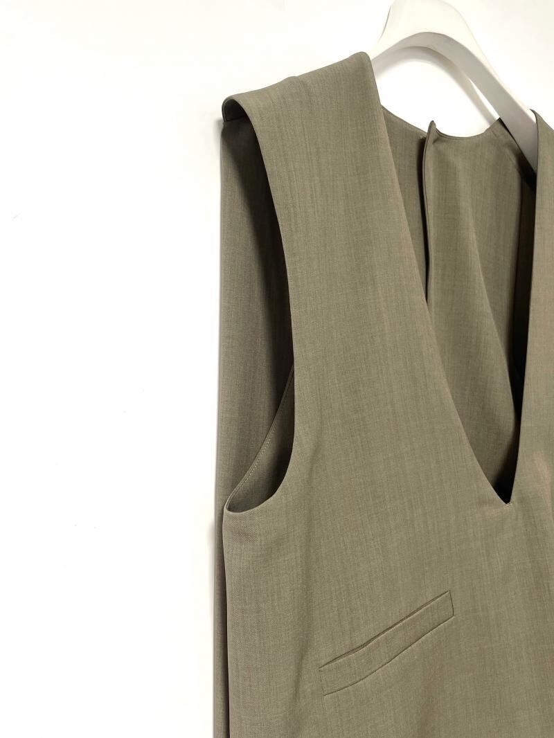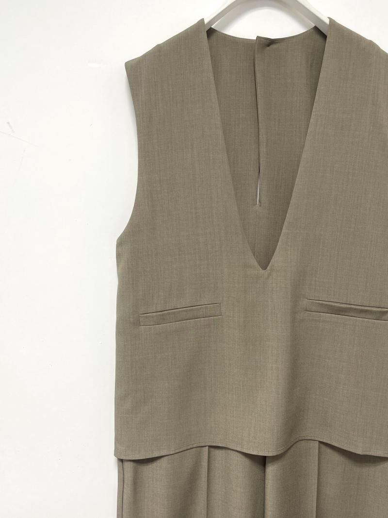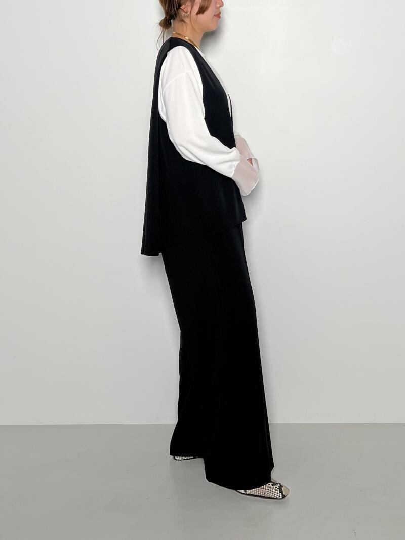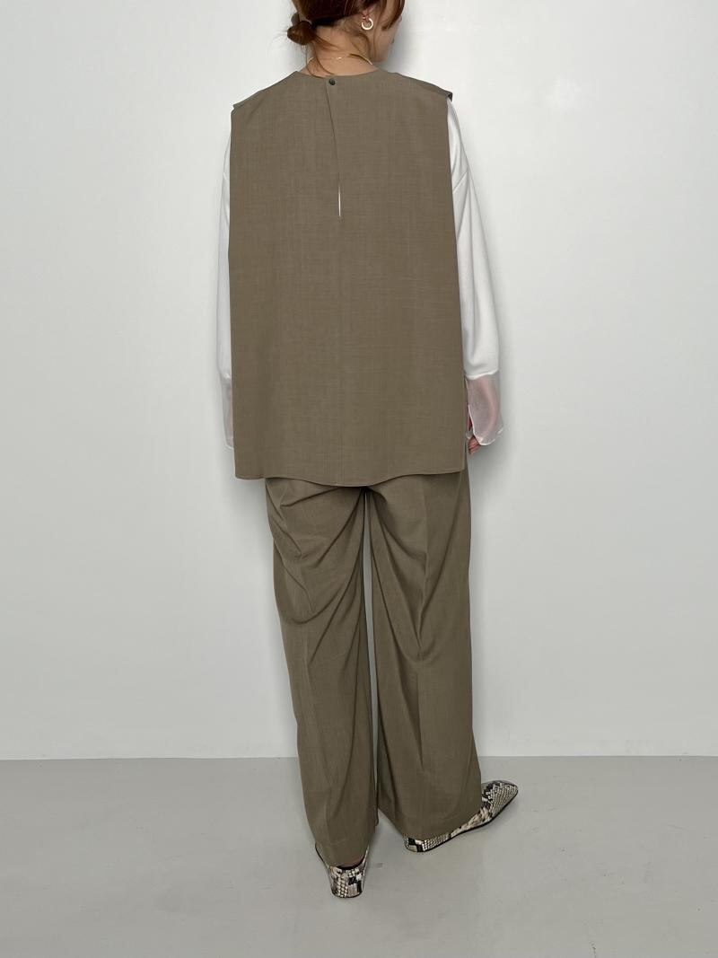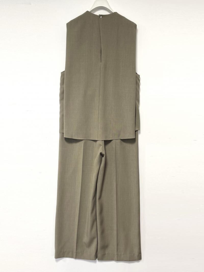 ご好評頂いてた肩タックデザインベストとワイドなストレートシルエットのパンツをドッキングし、