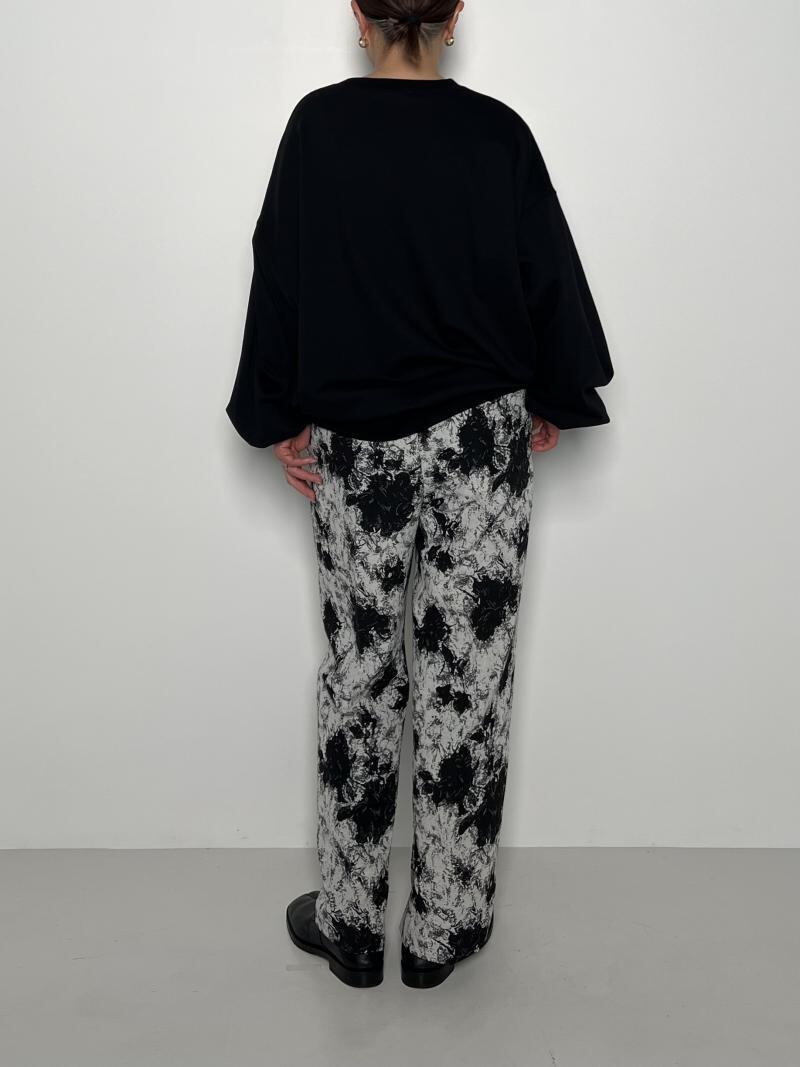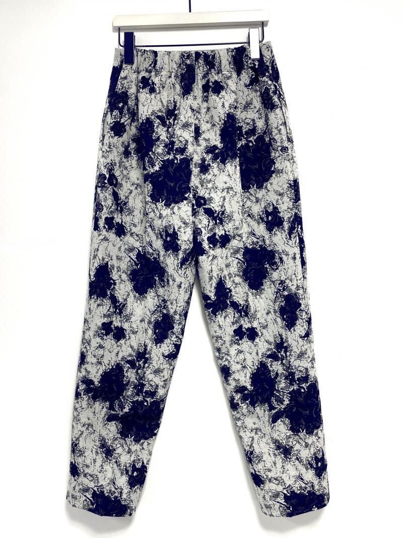 ジャガード織りの素材を使用した、テーパードパンツ。