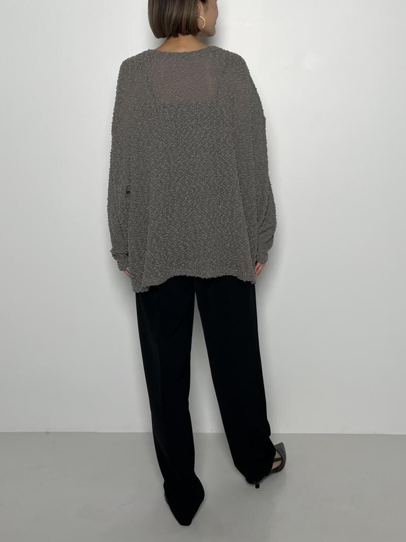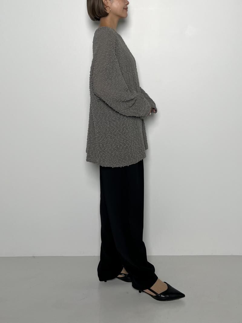 優しい印象の素材を使用し、ルーズなシルエットにする事抜け感ある1枚に仕上げています。