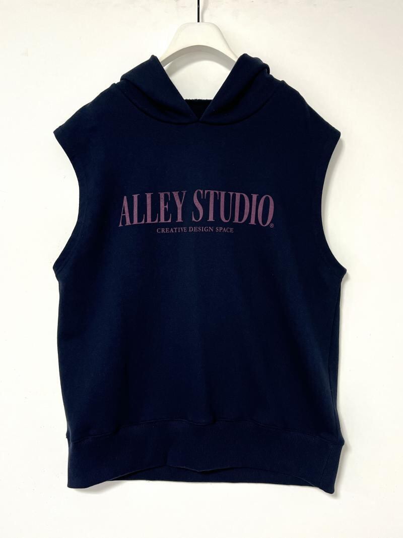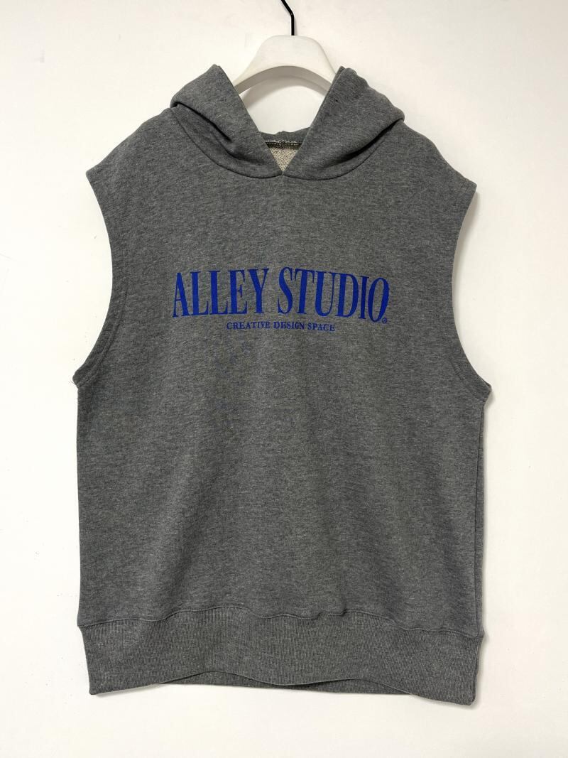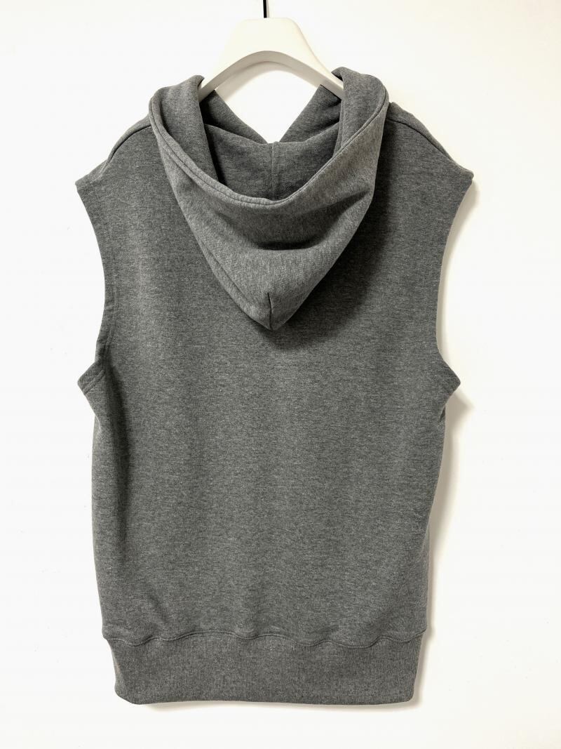 オリジナルのロゴを配した裏毛のフーディーベストです