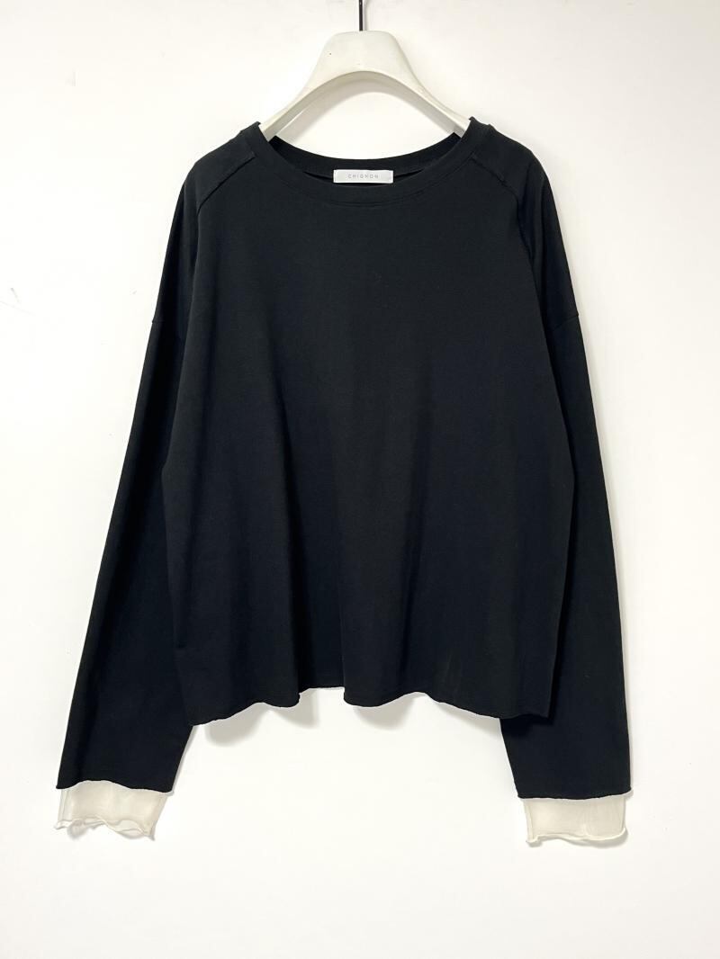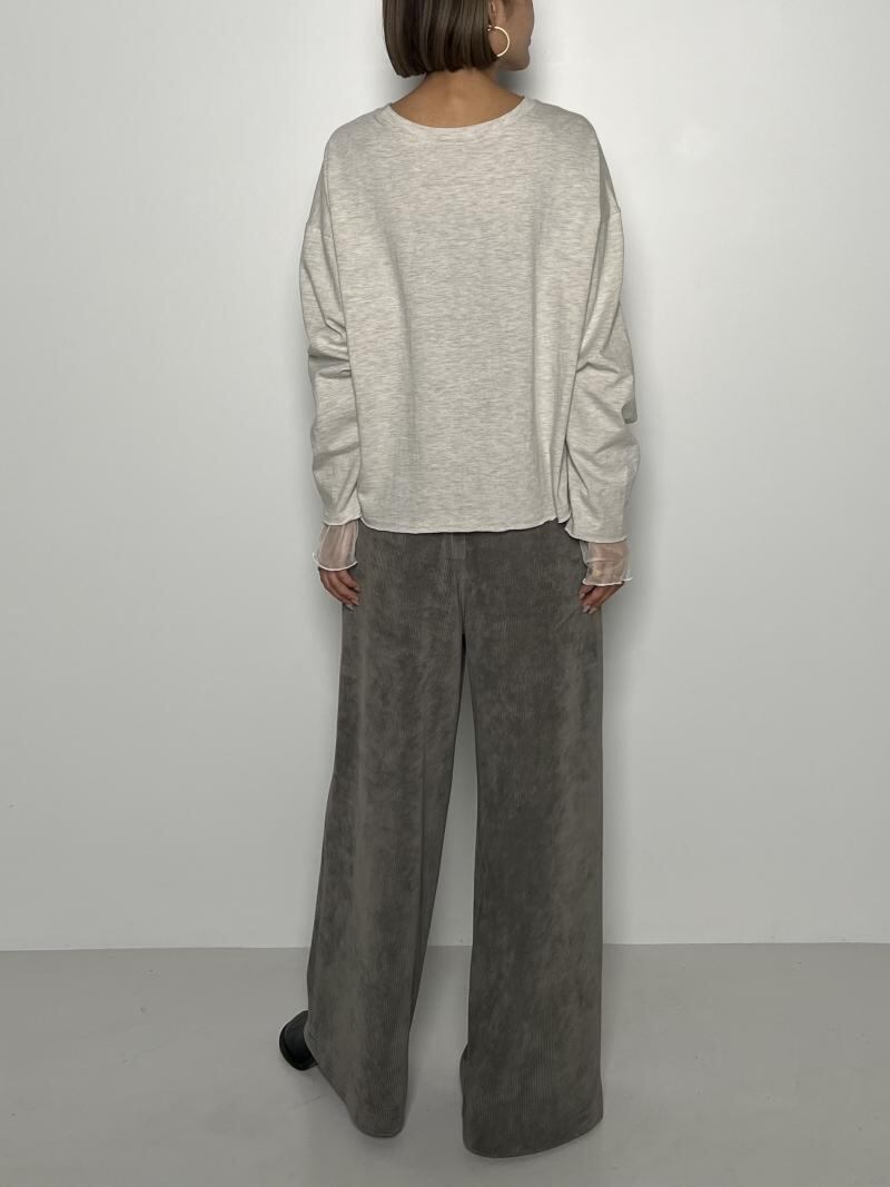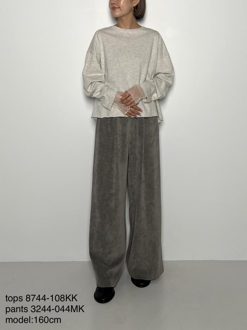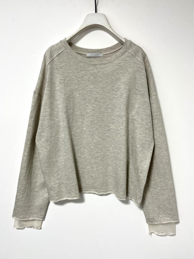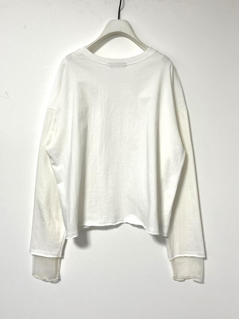 袖はチュール&表地の2枚仕立てにしているので、表地をたくし上げる事でチュール袖をレイヤードしている様に着用頂けます。