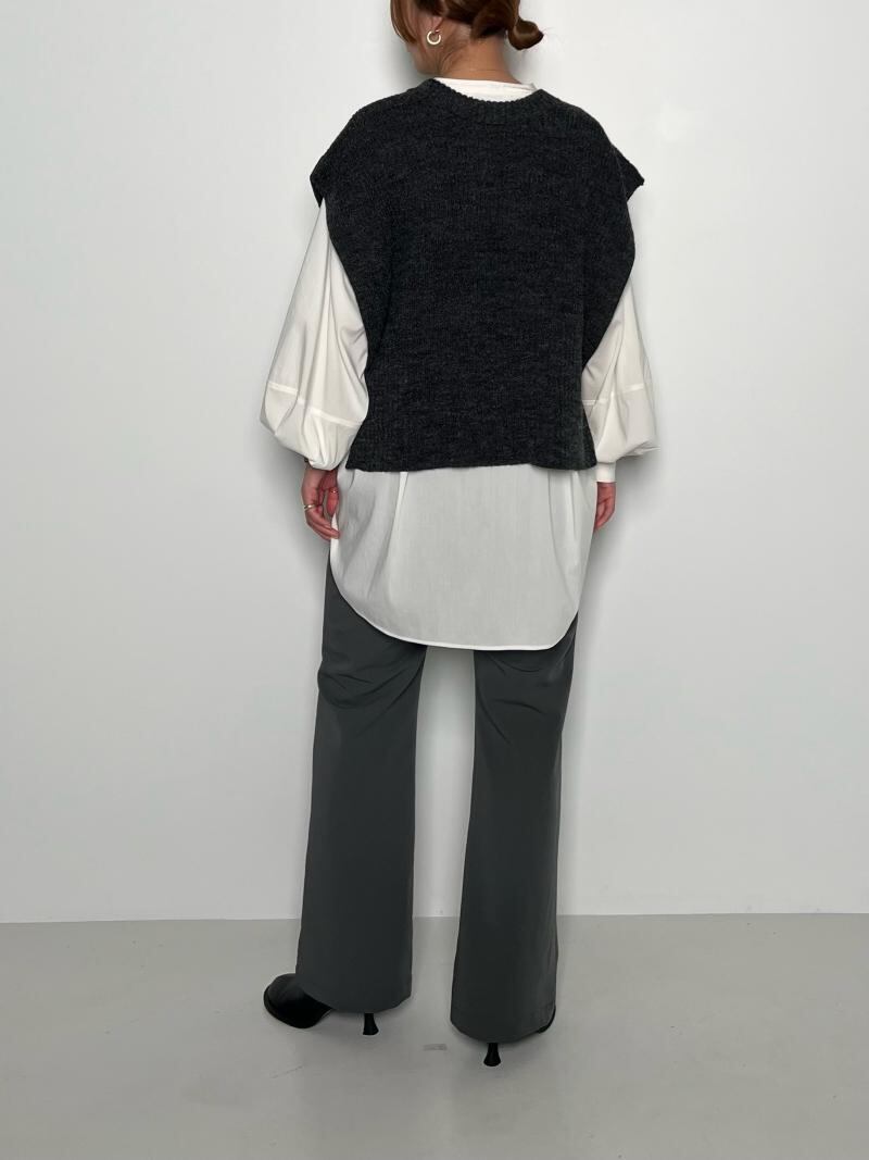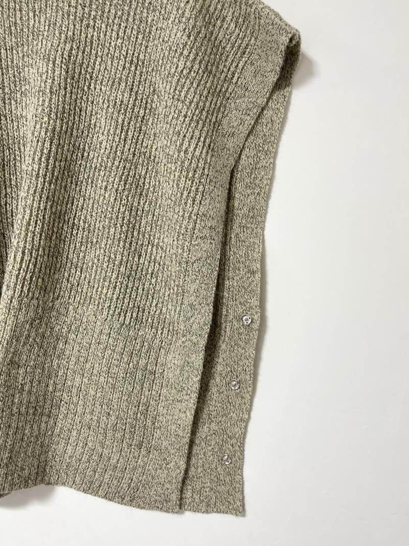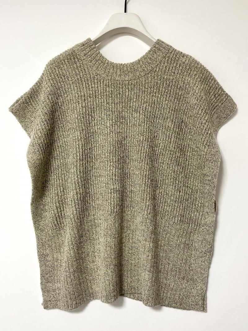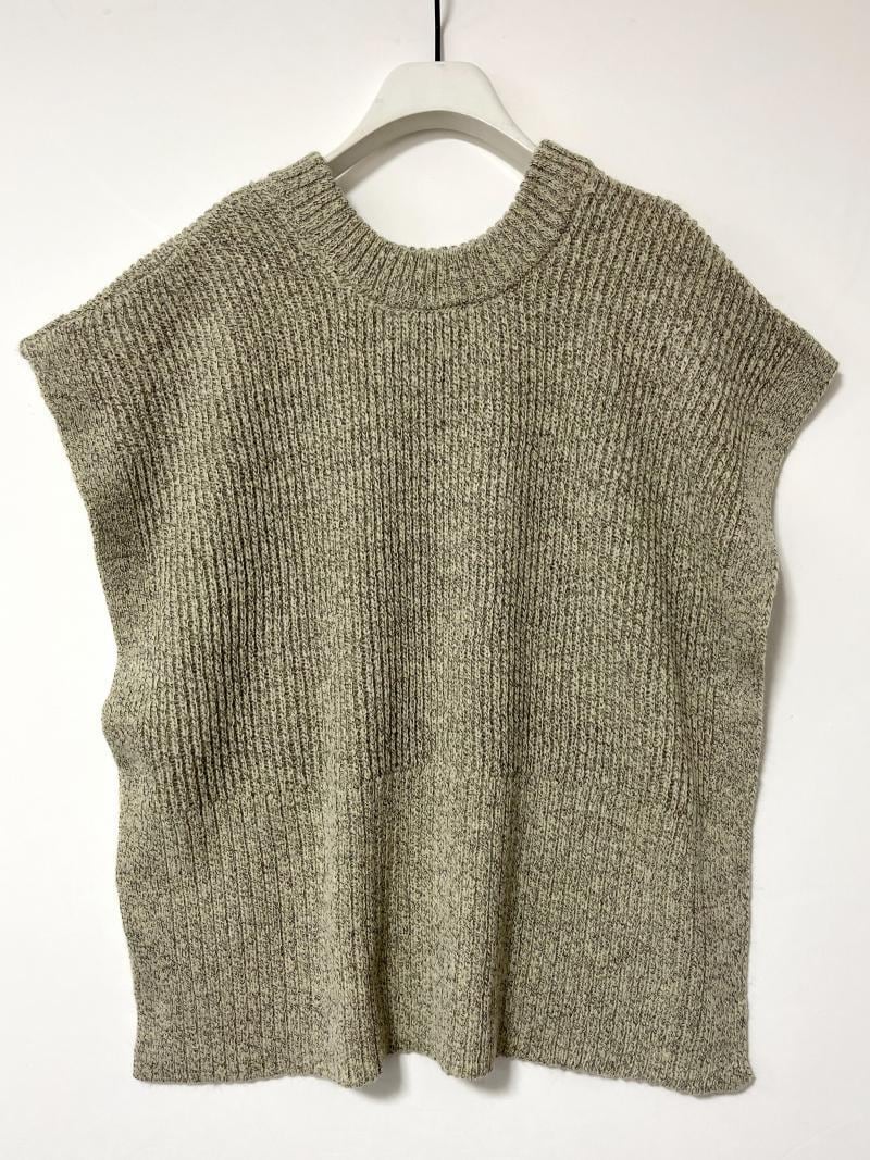 畦編みとリブ編みを掛け合わせ、膨らみのある糸で編み上げた2WAYベスト。