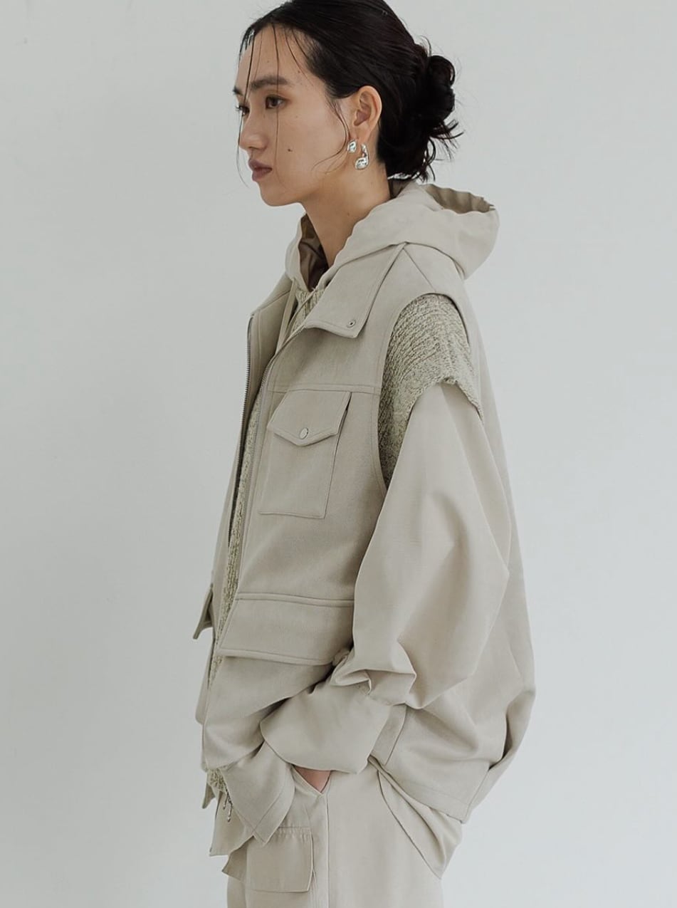 カットソーのインナーレイヤードはもちろん。アウターなどの上のレイヤードでの着用もおすすめです。