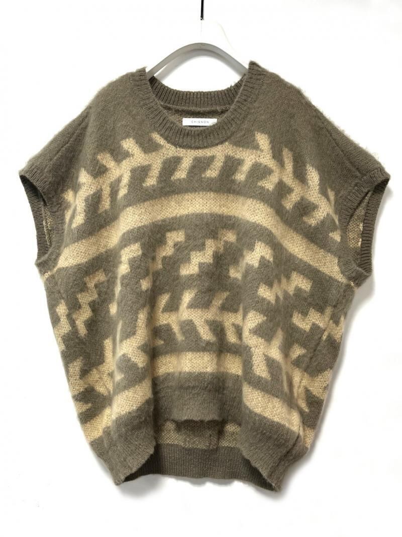 今季の毛がきジャガードニットは、リーフモチーフと幾何を掛け合わせた、古着の様にどこか懐かしい印象の柄に仕上げています。