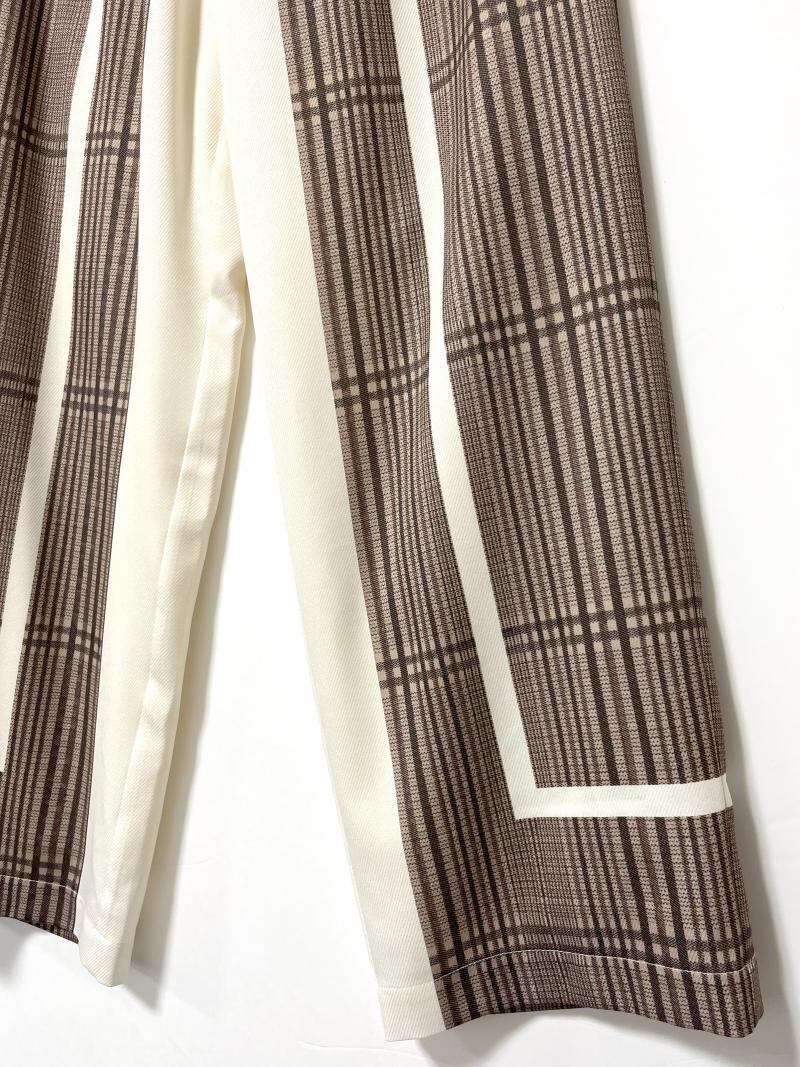 秋らしいグレンチェックにラインを入れた構築的なパネルオリジナルプリントのパンツになります。