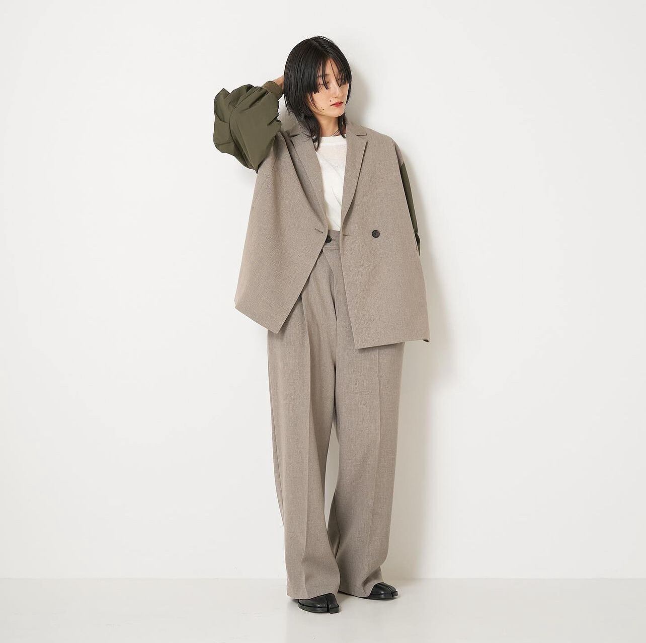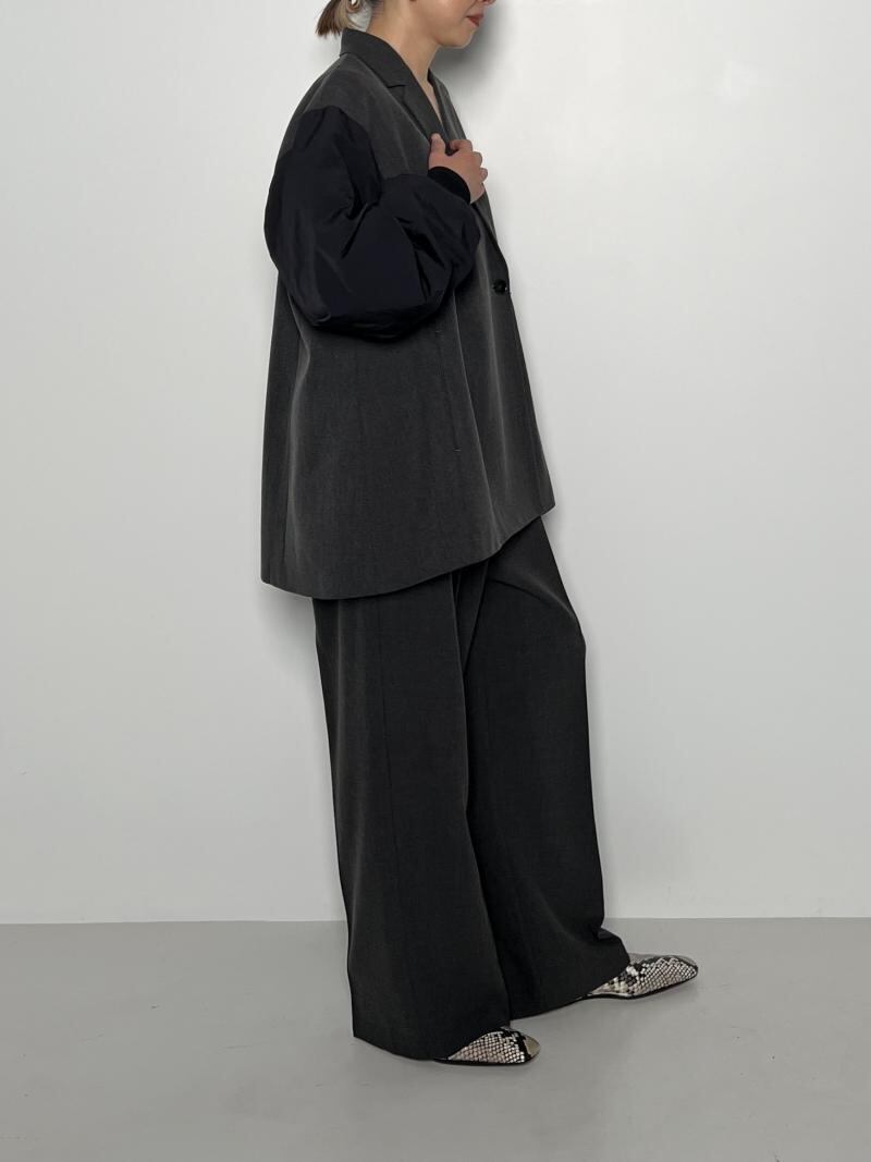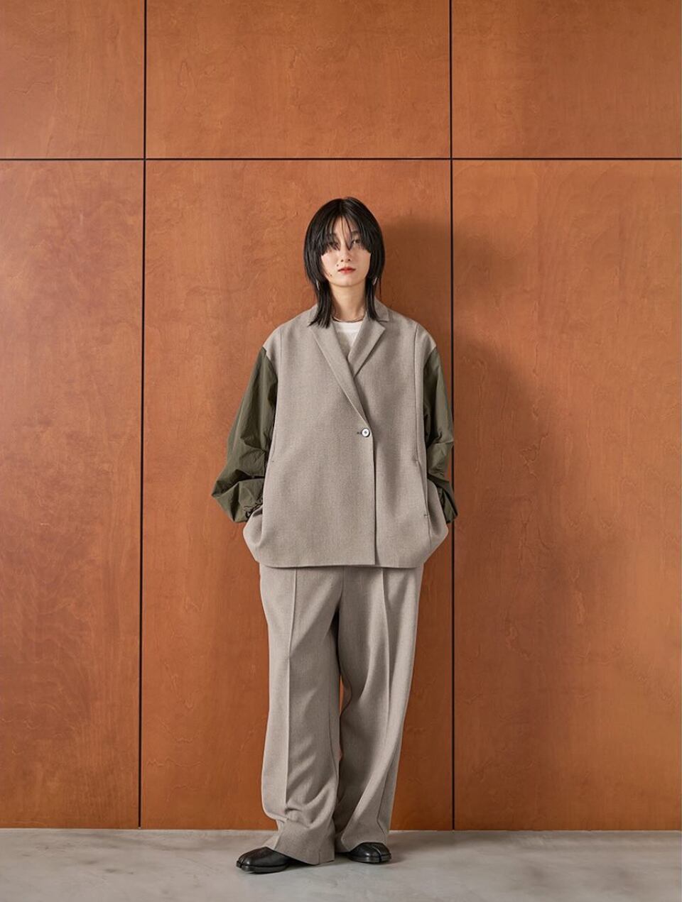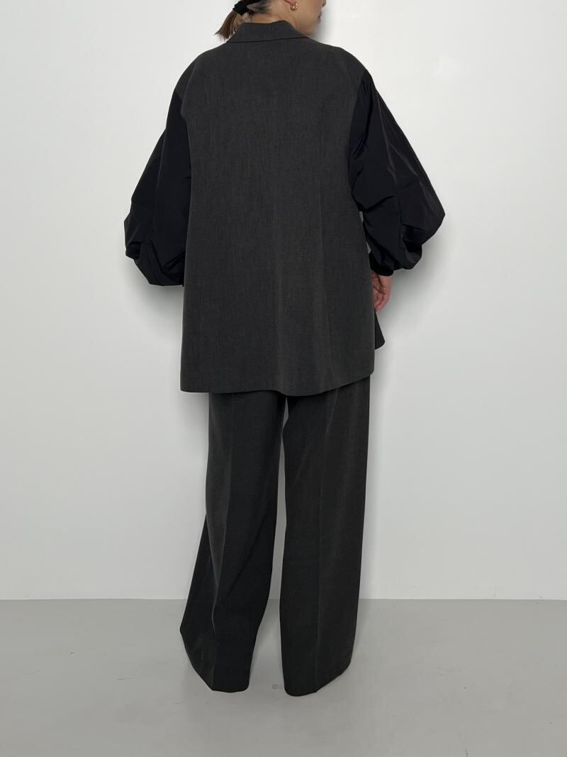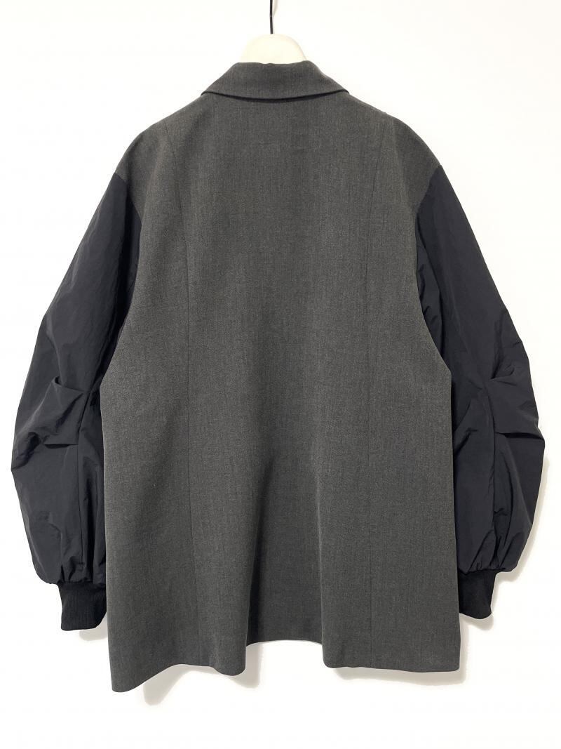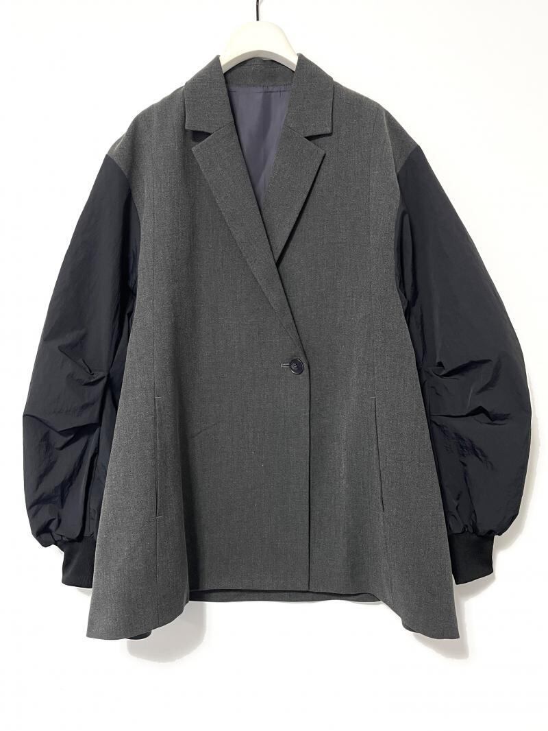 身頃にはウール調の素材を使用し、袖にはナイロンの少しハリ感のある素材を使用しています。