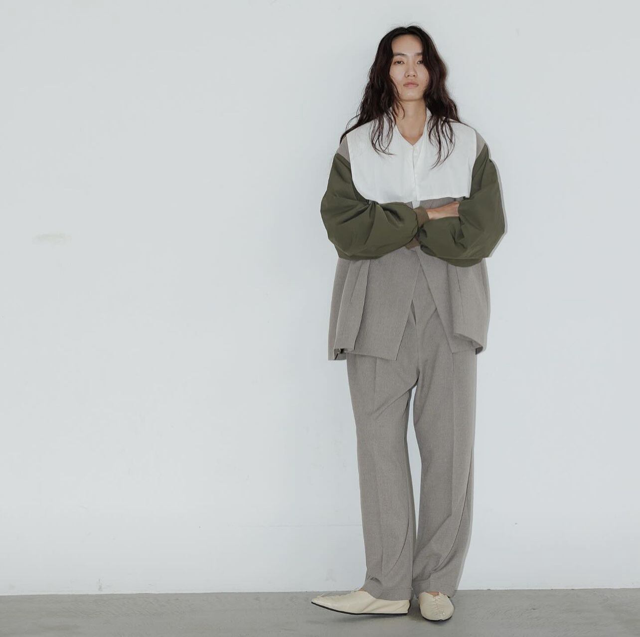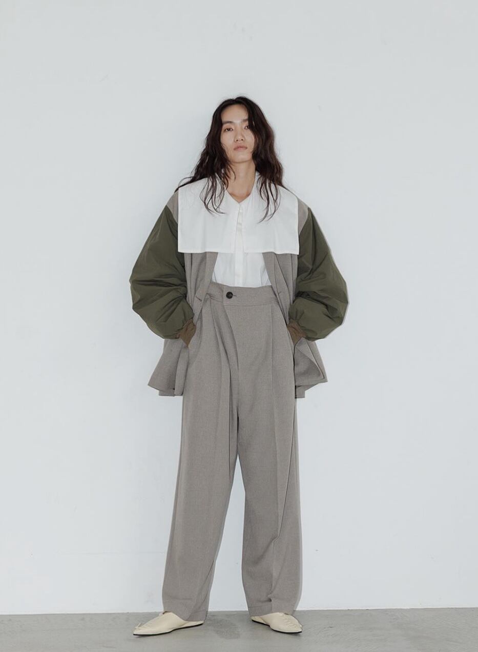 前後の身頃切替部分で腰回りに膨らみを出しています。着用して頂くとわかるCHIGNONらしい、ルーズで面白いフォルムの効いたシルエットをお楽しみ下さい。