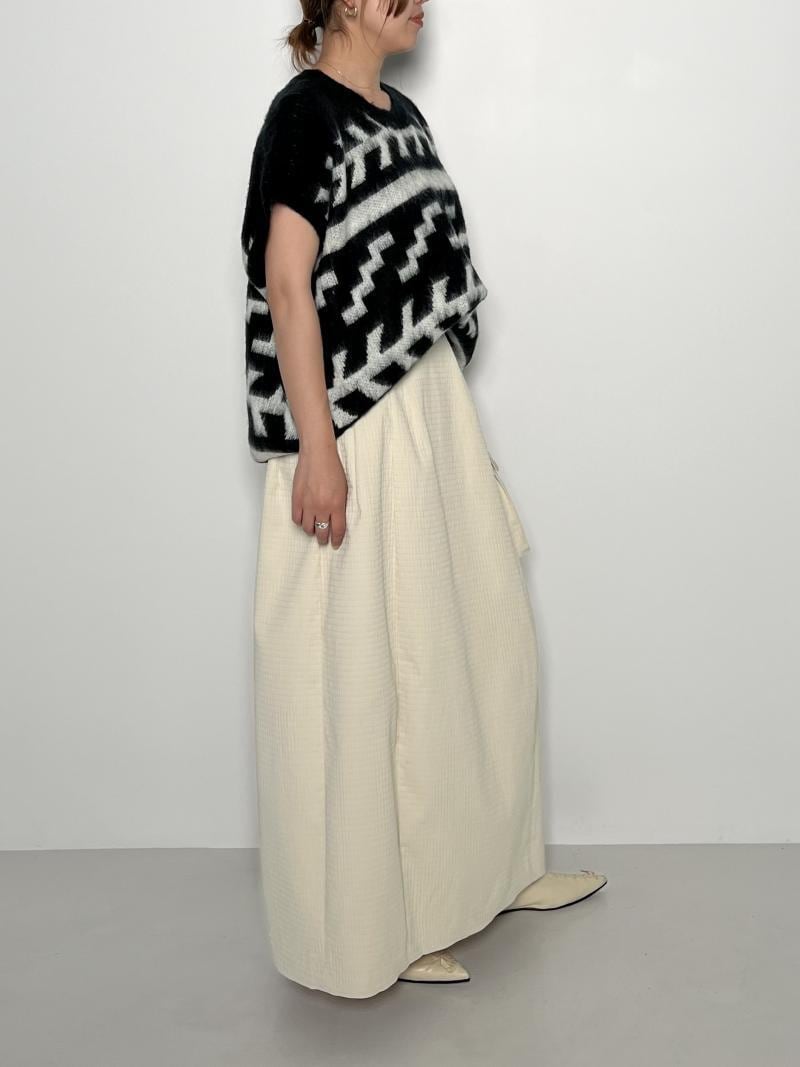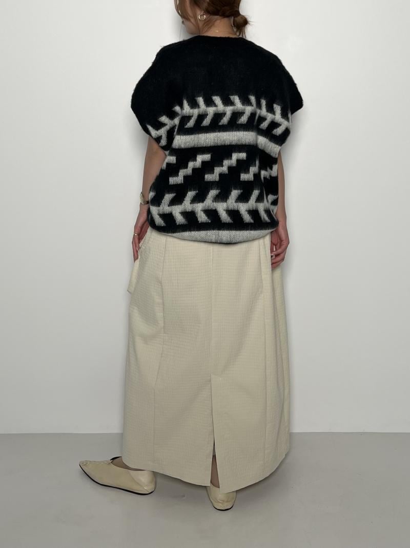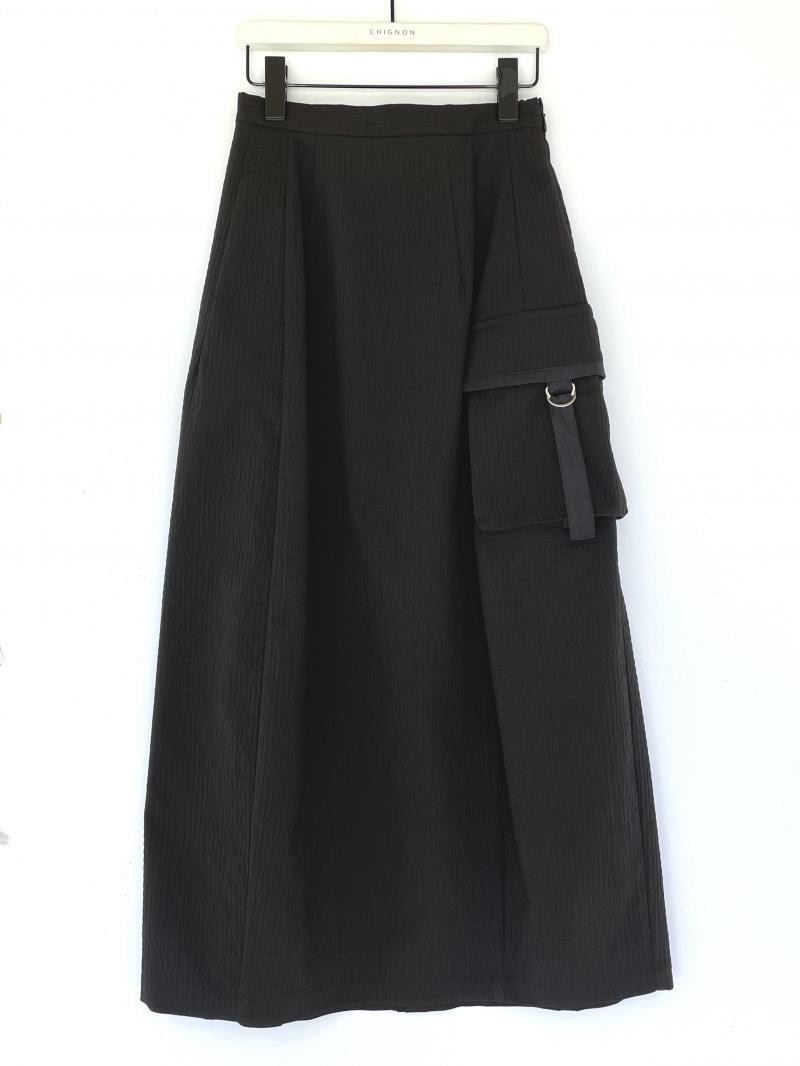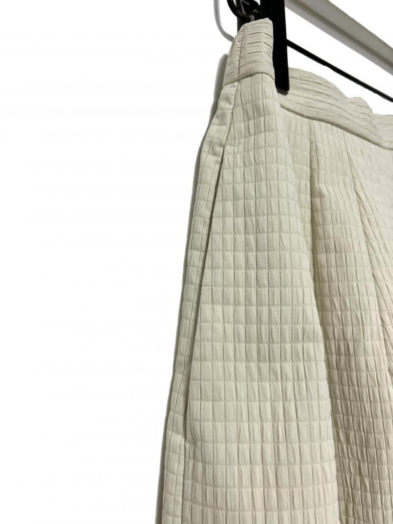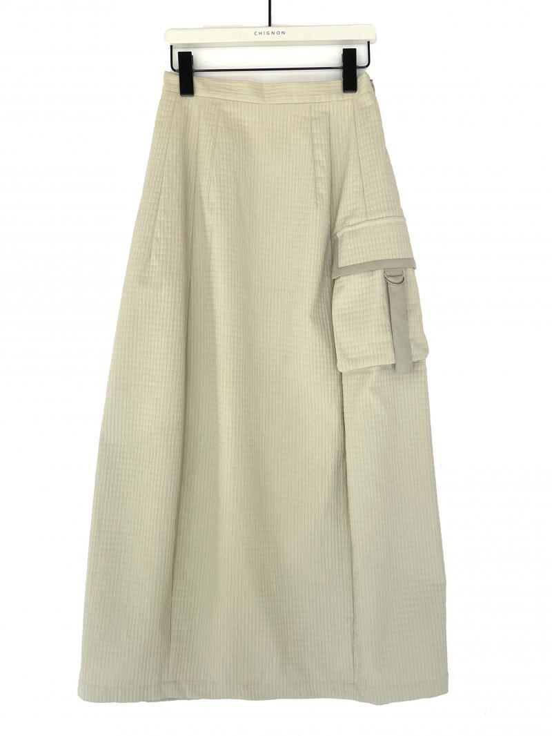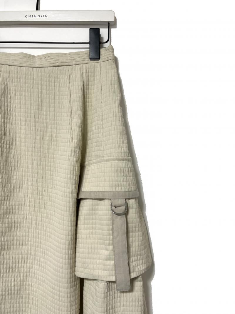 立体感のあるキルトの様なジャガード素材を使用した、コクーンポケットスカートです。