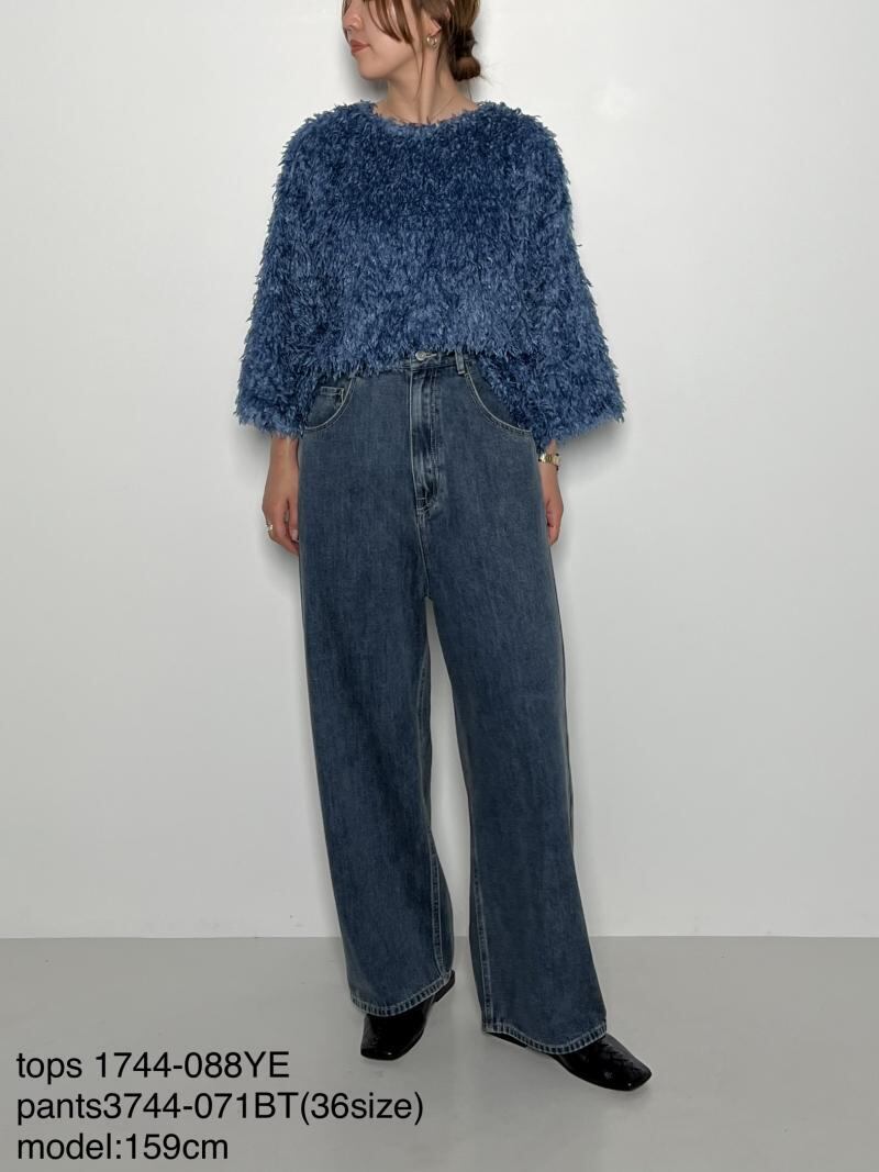 股上を深めに設定し、ワイドでルーズなシルエットのデニムパンツです。