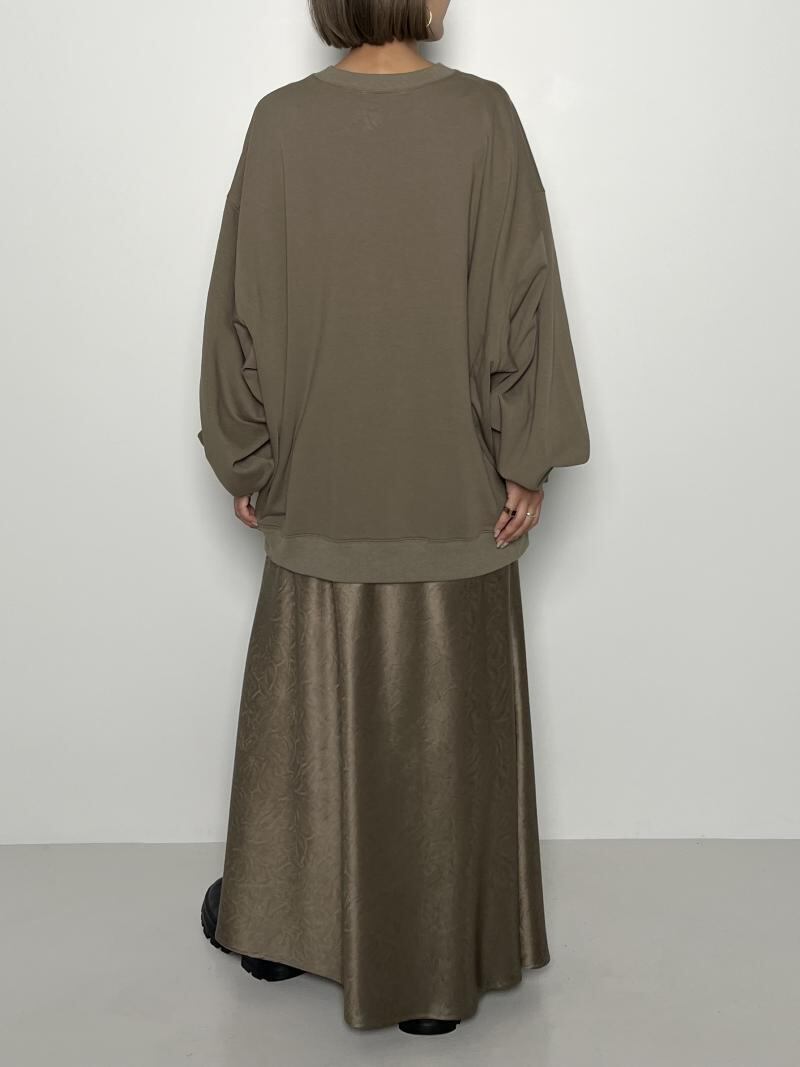ワイドでルーズなサイズ感で、袖と裾にタックを入れる事で、ボリュームのあるシルエットにしています。