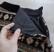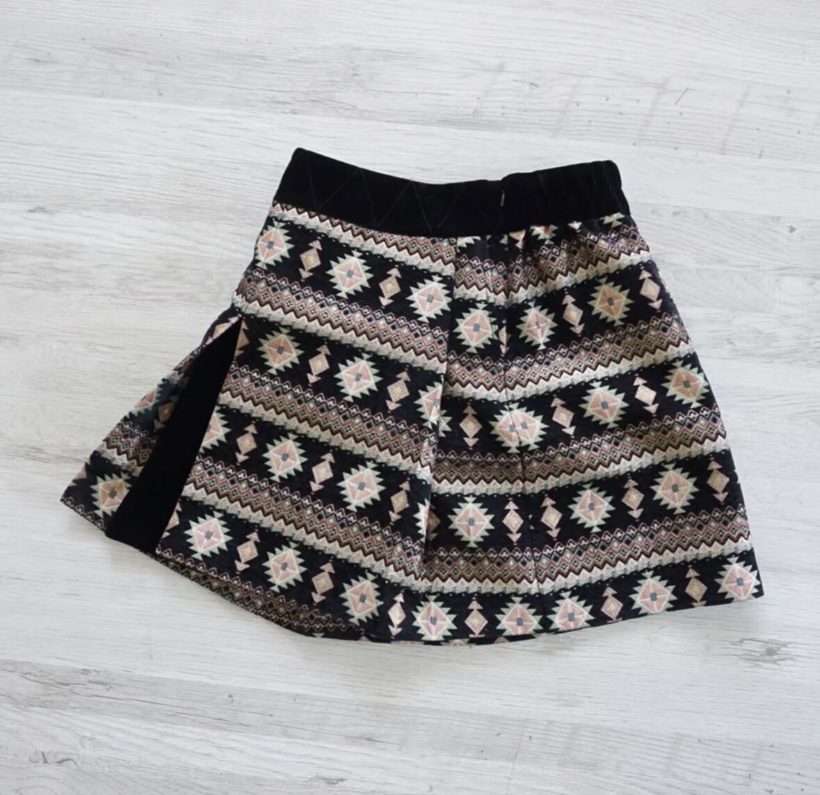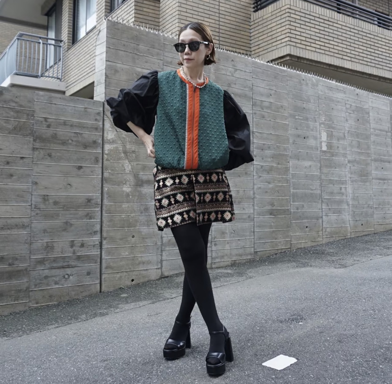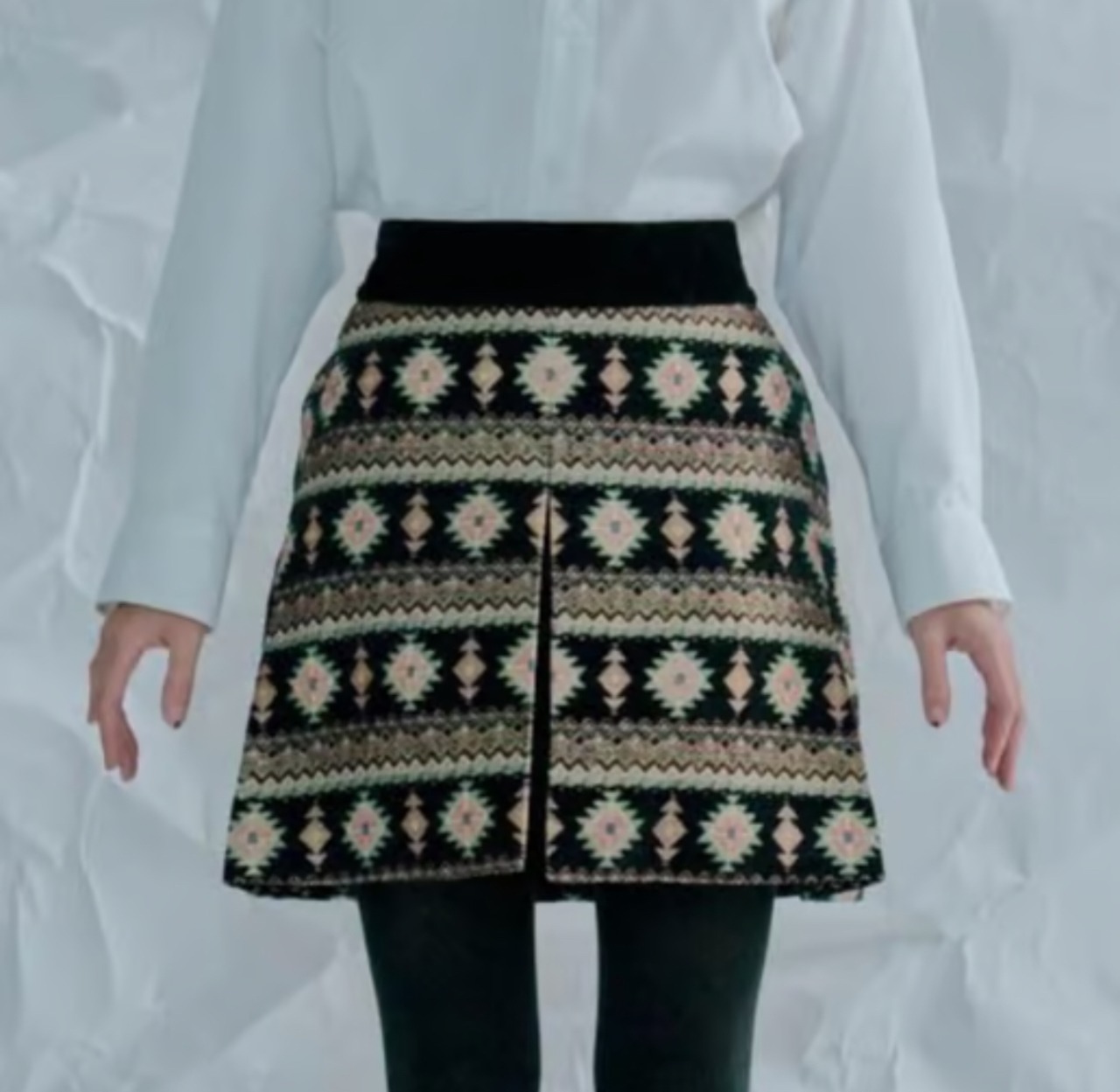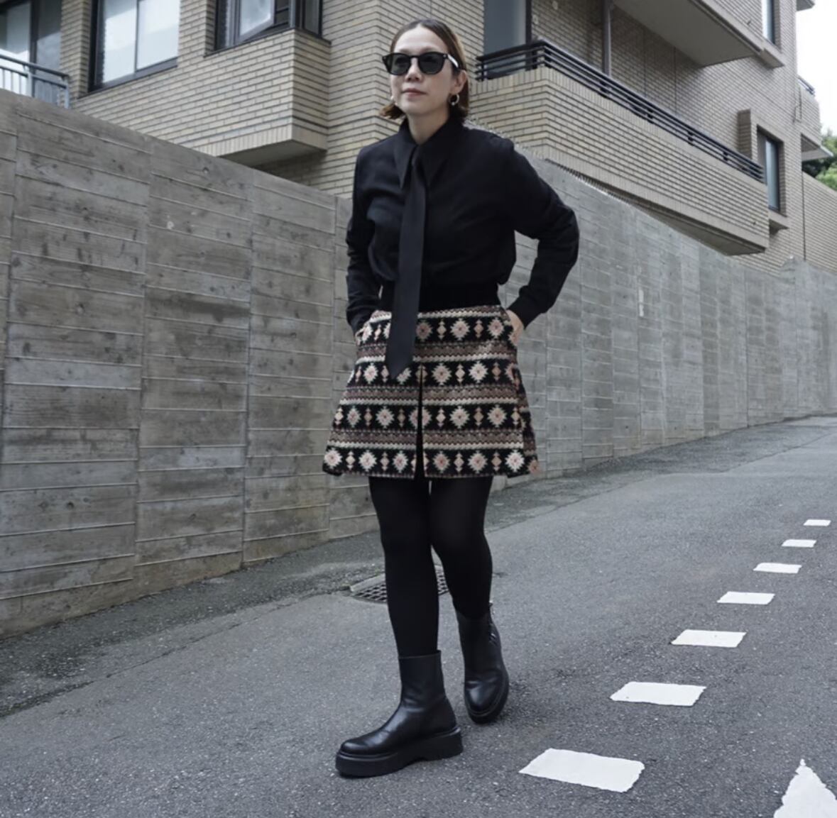 広がりがあります。広がりがあるので、足がほっそりと見える視覚効果があります。外側はスカート仕様で、裏地がパンツになっているので、安心して着用してもらえると思います。ミニボトムがお好きな方はぜひチャレンジしてもらいたいです。