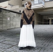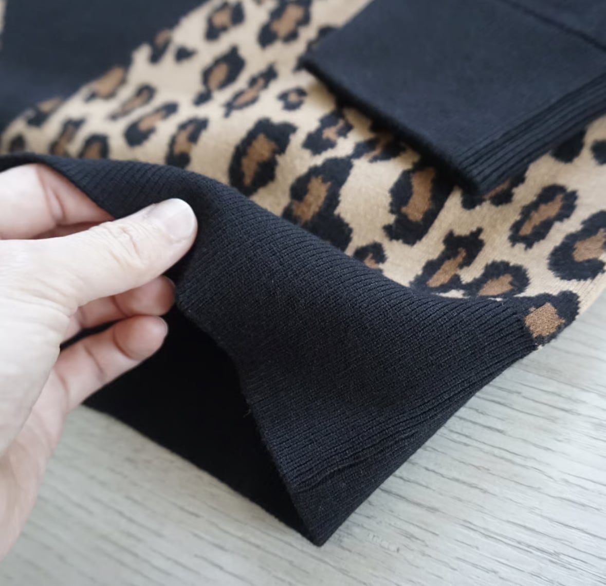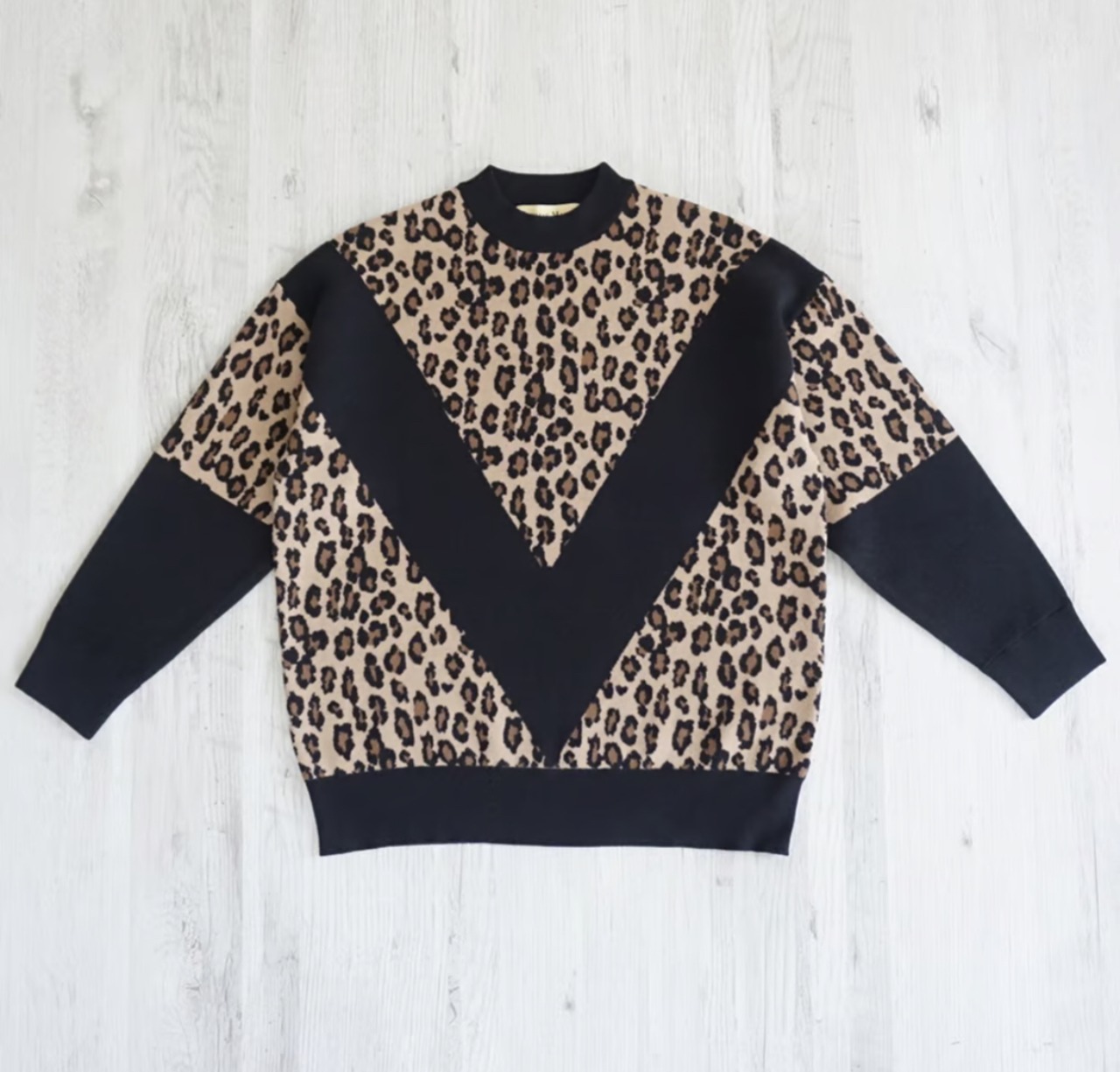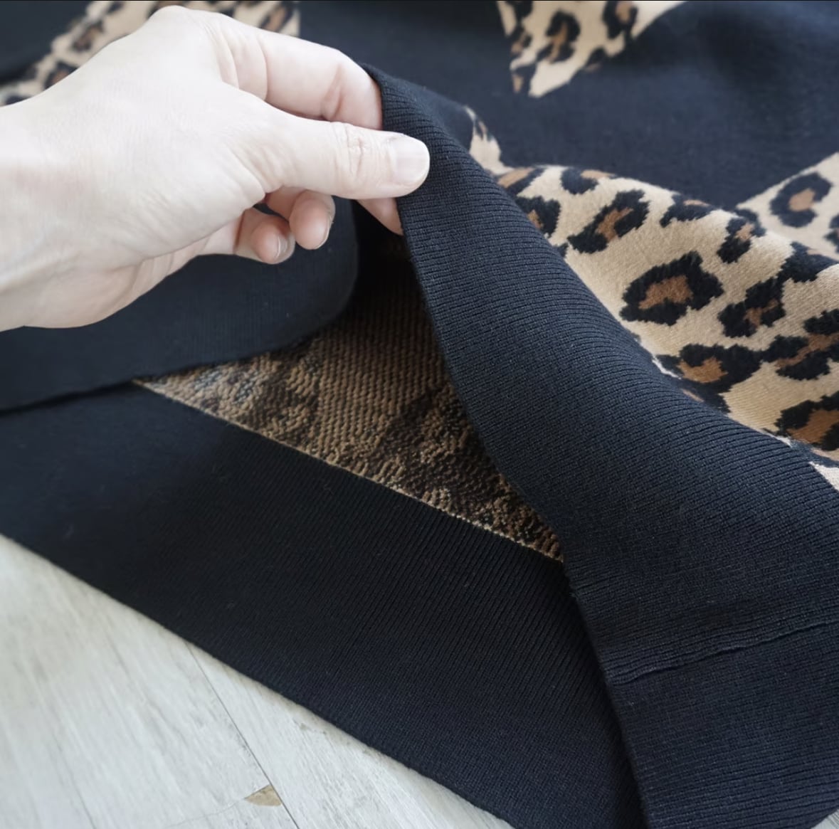 レオパードは定期的に出している大好きな柄です。今回はニットでオリジナルの柄を作りました。トーマスマグパイだけのオリジナルデザインの柄になっています。ニットは柄はどれもオリジナルで、毎回苦心しながらデザインしていますが、レオパードの柄は初めてのチャレンジです。定期的に着なくなる時期がありますが、数年おきにレオパードに対するブームがあるのか、今年の冬にまた着たいなと思いデザインしました。