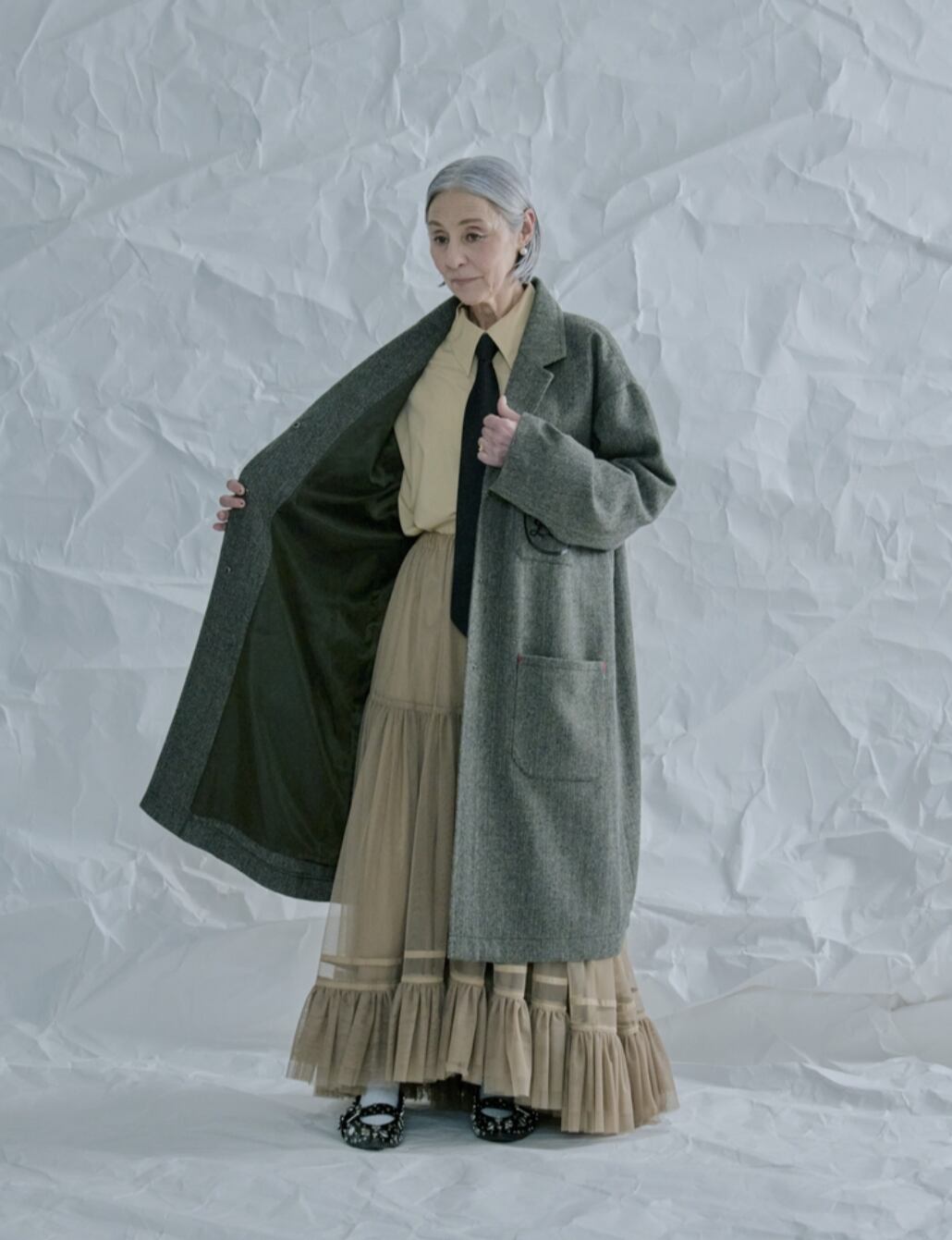 展示会では長すぎず、どんな身長の方にも体型の方にもハマると好評なコートでした。ウールの暖かいコートです。