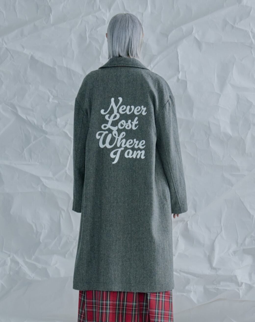 また背中にもNEVER LOST WHERE I AM(自分がどこにいるのか迷子にならないよ)と大胆にロゴを入れてみました。