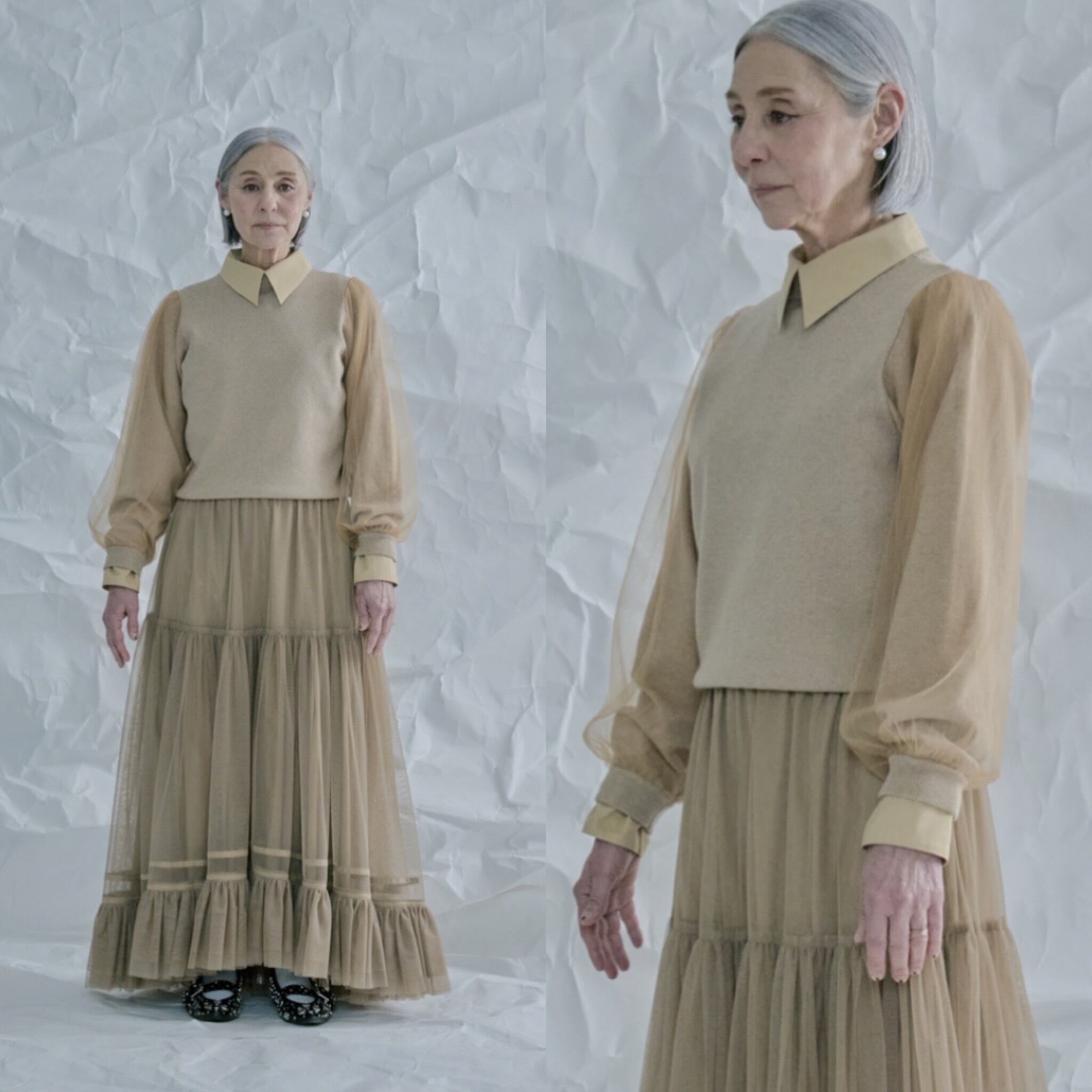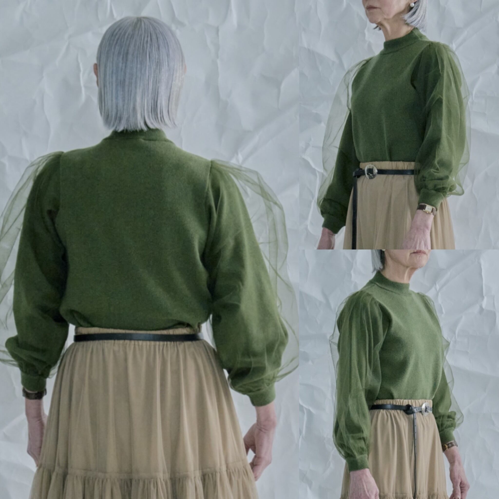 予約販売【 THOMAS MAGPIE 】sleeve over tulle knit ( 2244751 ) 10月お届け