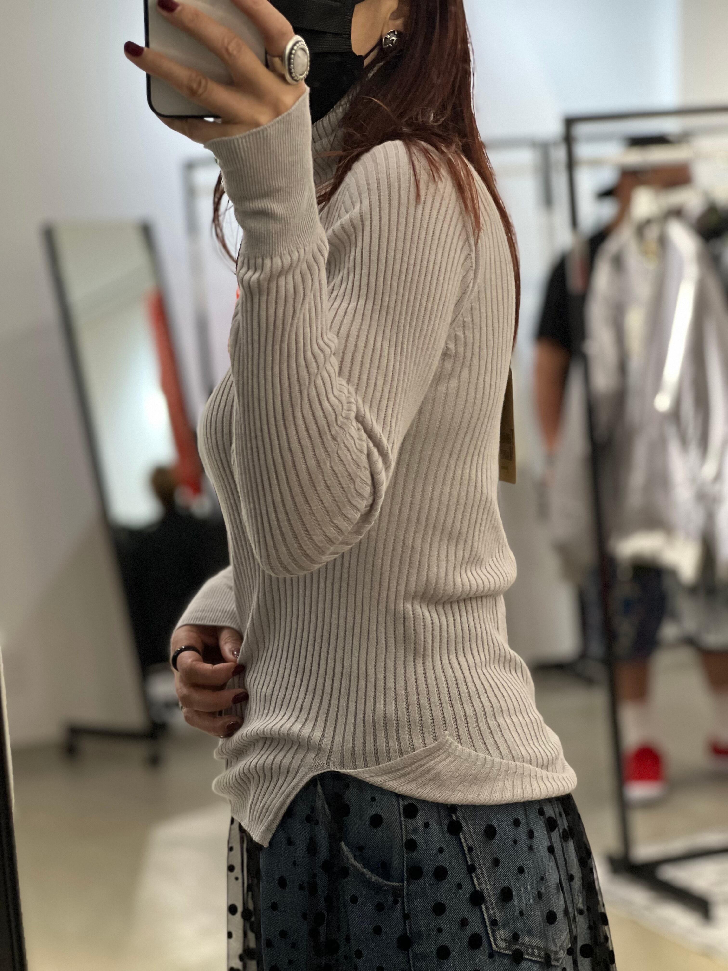 首元も沿ってくれるリブ感ですが締め付けはありません。