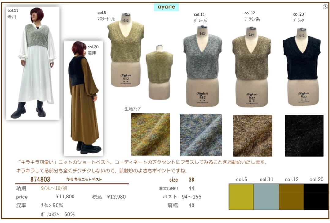 予約販売【 ayane 】キラキラニットベスト (874803) 10月上旬お届け