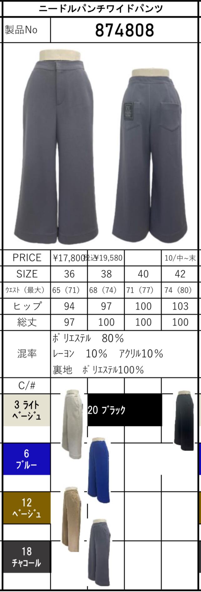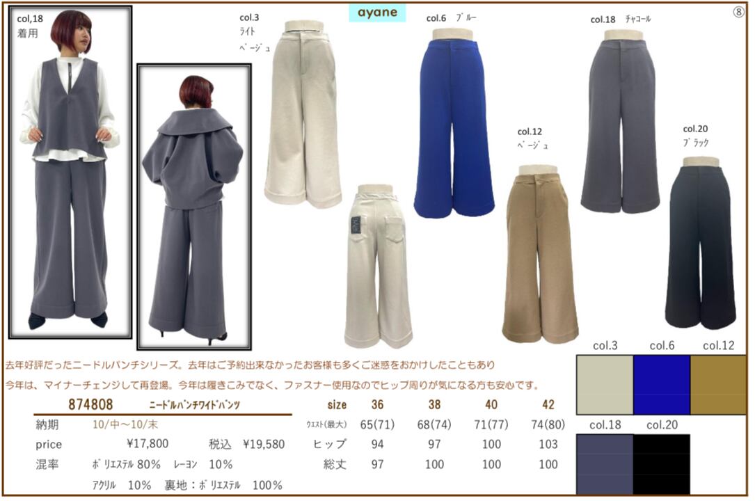 予約販売【 ayane 】ニードルパンチワイドパンツ (874808) 10月下旬お届け