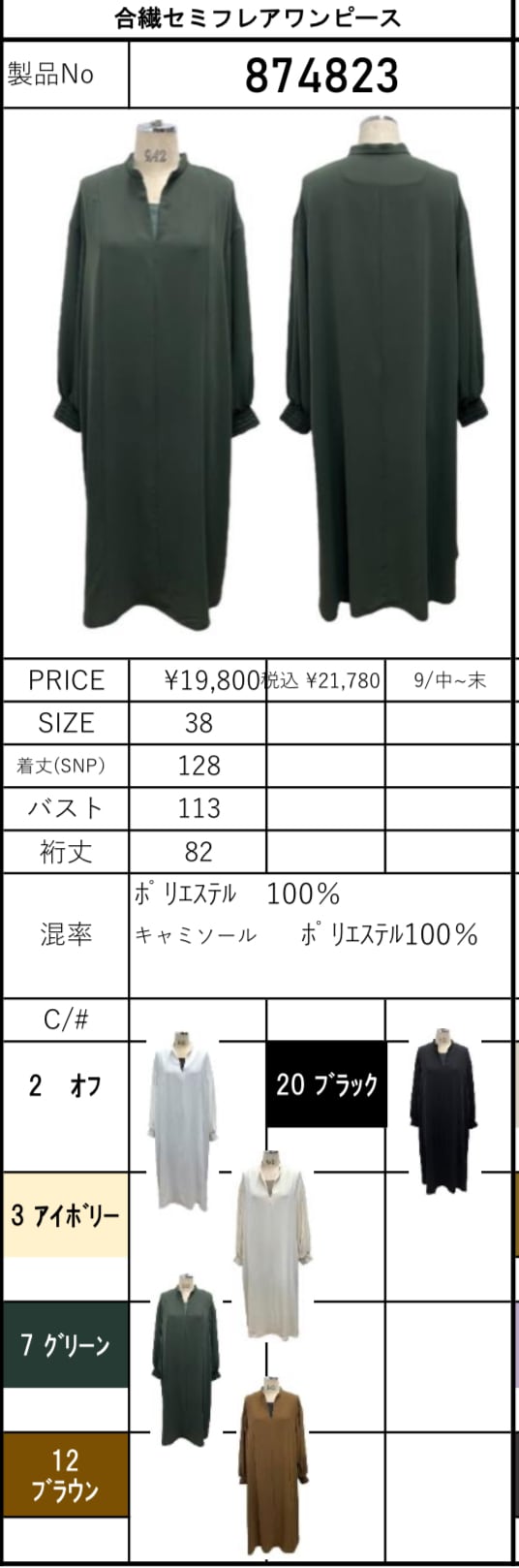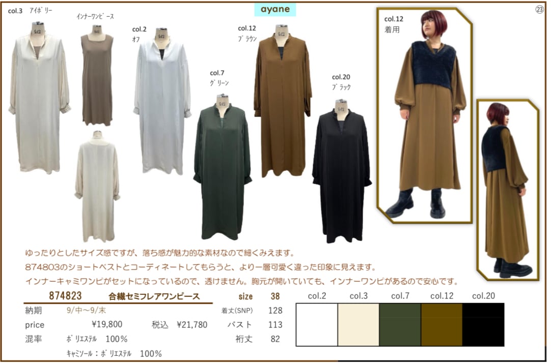 予約販売【 ayane 】合繊セミフレアワンピース (874823) 9月下旬お届け