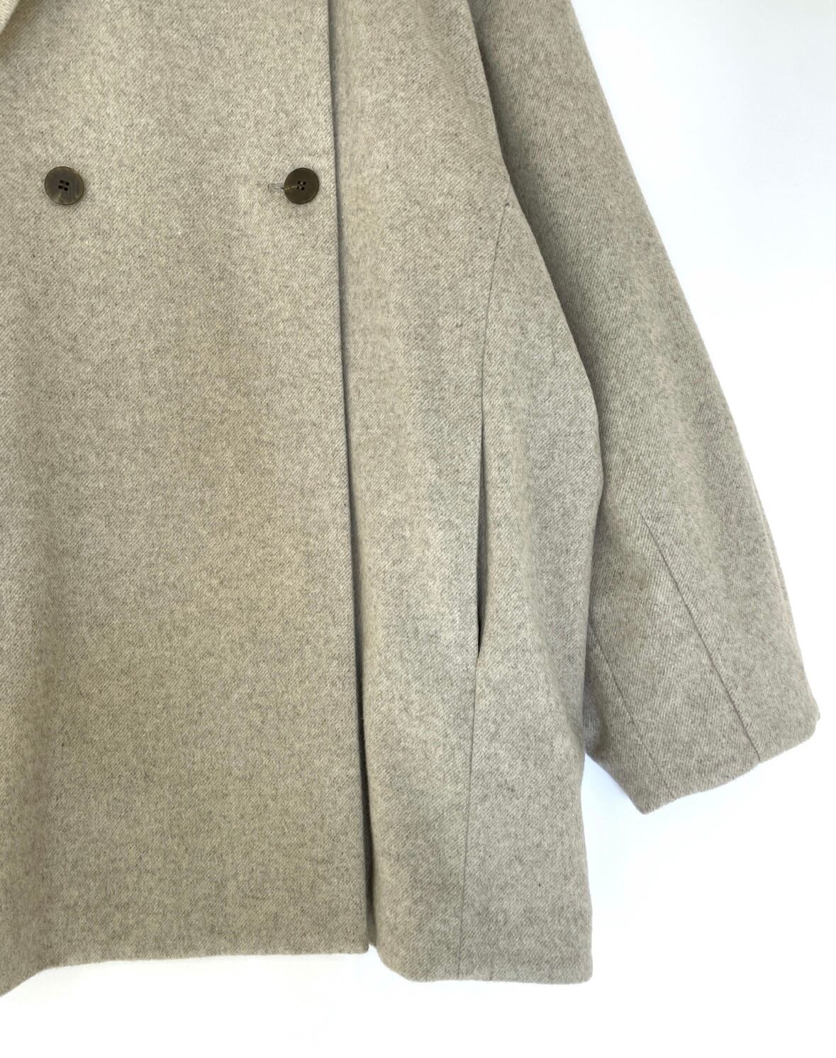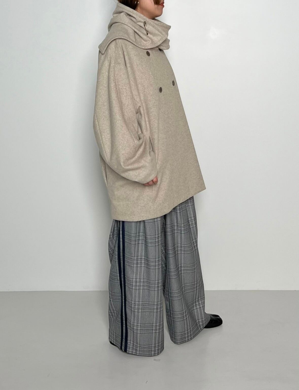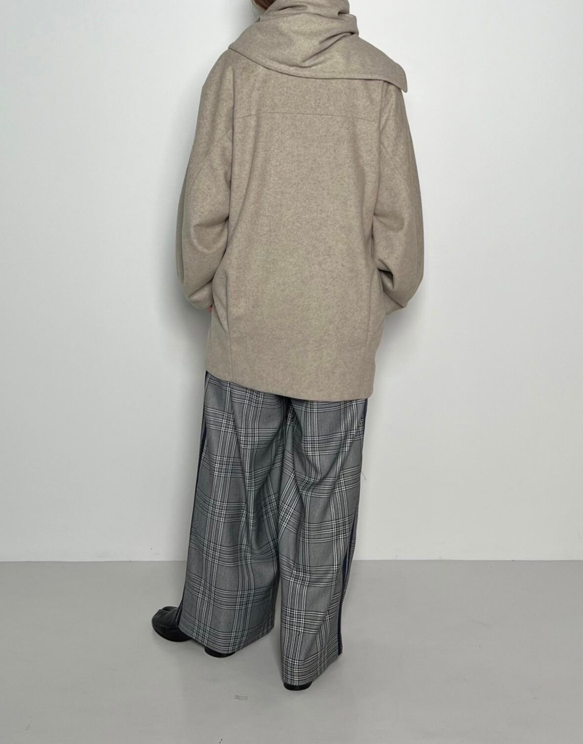 ウールとポリエステルの混紡なので、温かみもありながら軽さのある素材を使用しております。
