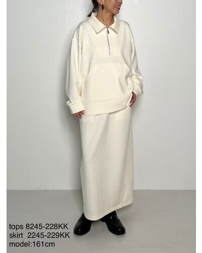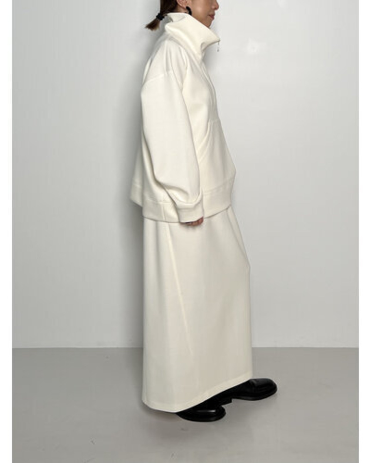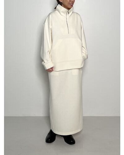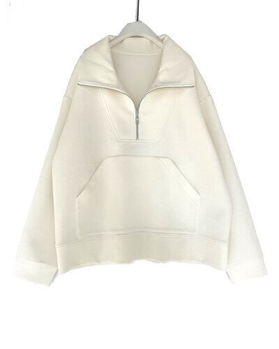 気安さと動きやすさを重視し作成しました。ハーフジップのディテールがトレンド感を演出。開けて着用いただくと衿にもなりスタイリングのアレンジの幅が広い1着に。