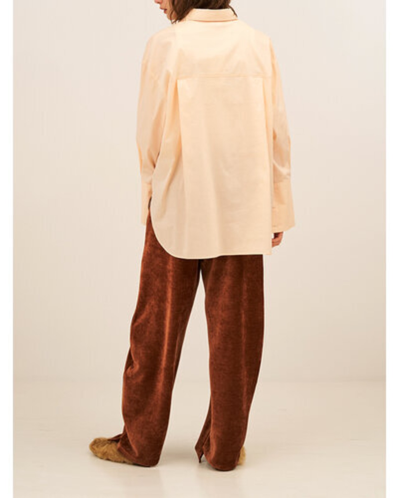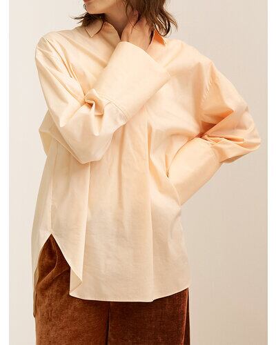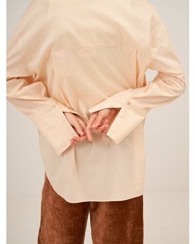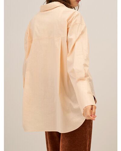 オーセンティックな印象のシャツも、淡いピンクベージュをチョイスすることで堅くなりすぎず、マンネリしがちな冬の着こなしにプラスしたくなるカラー。
