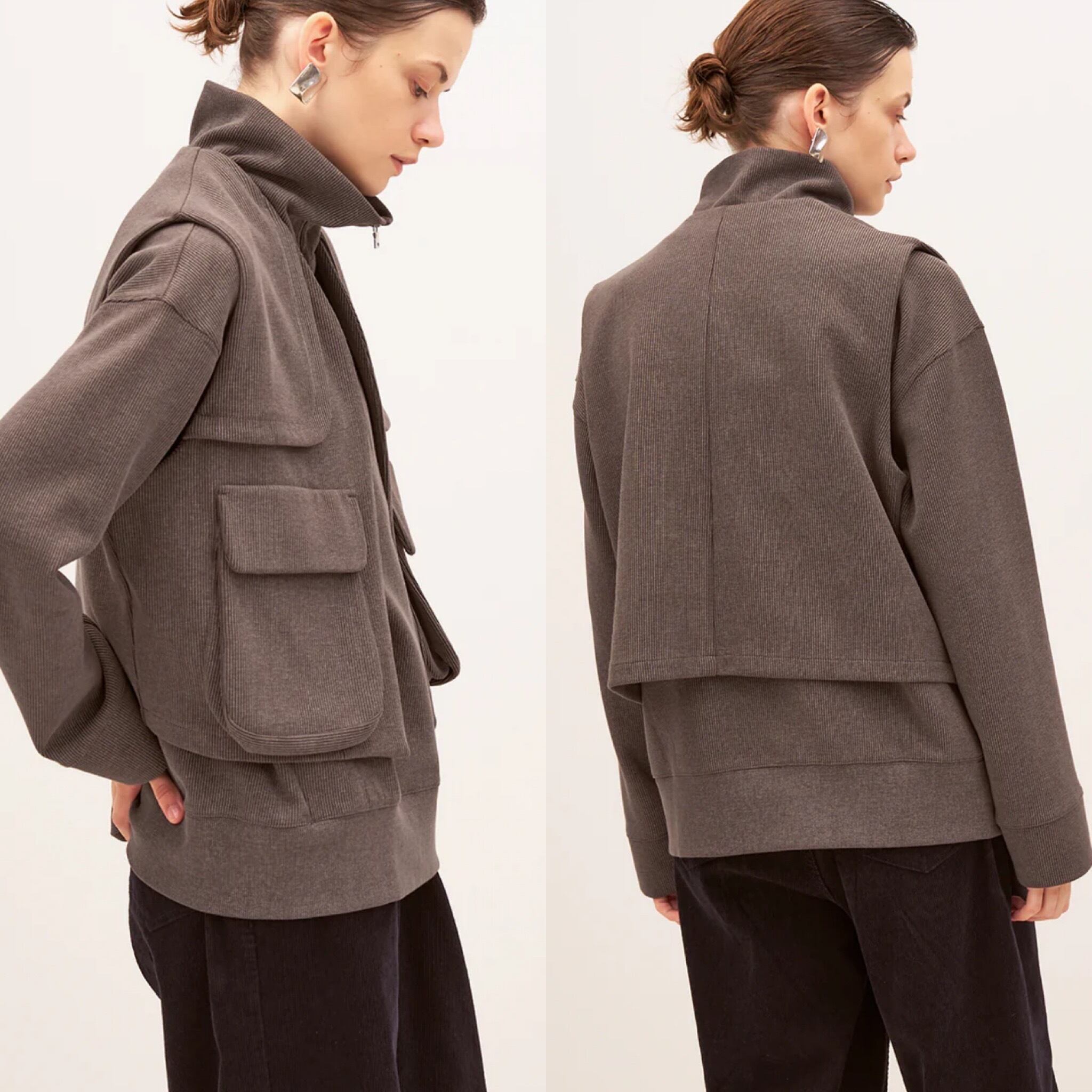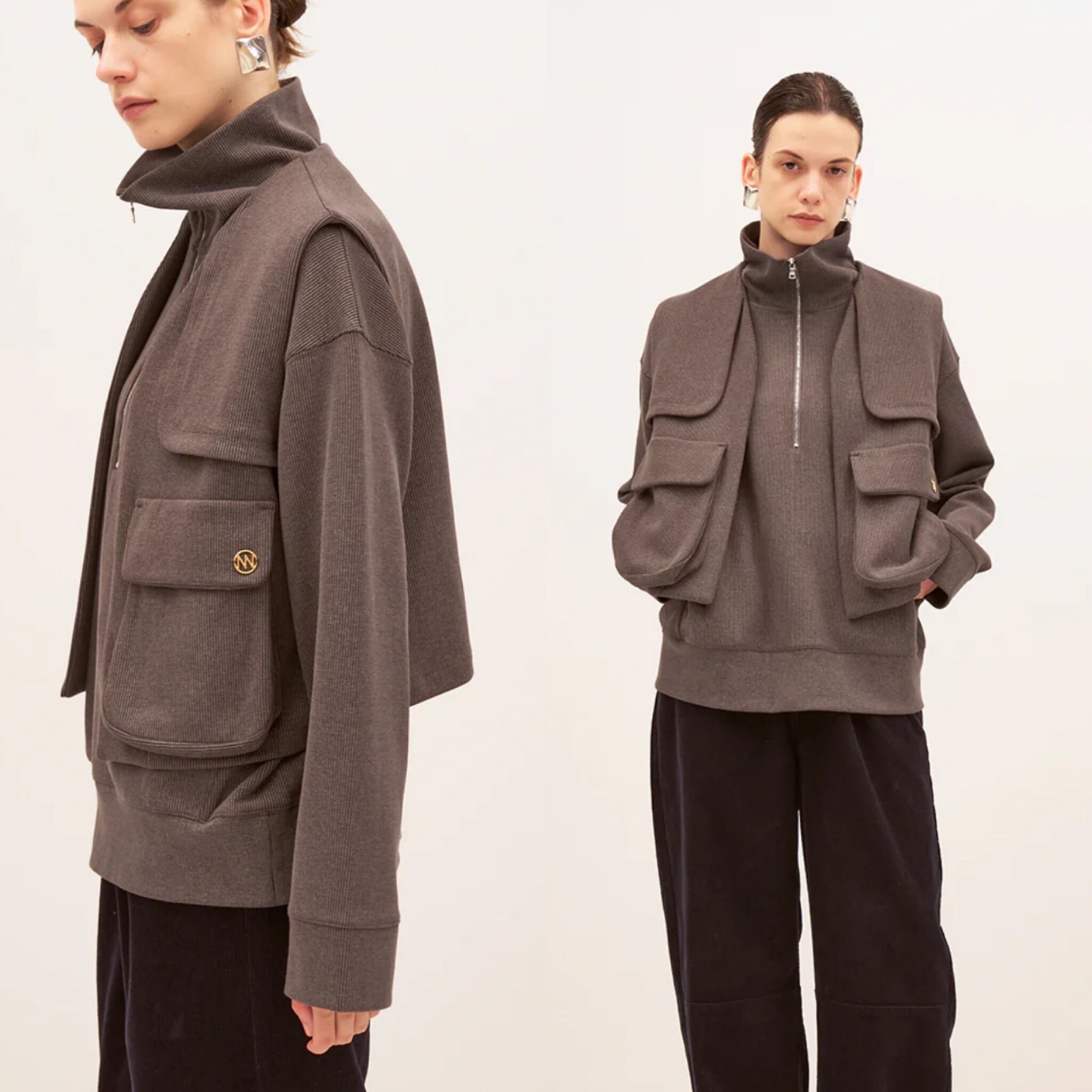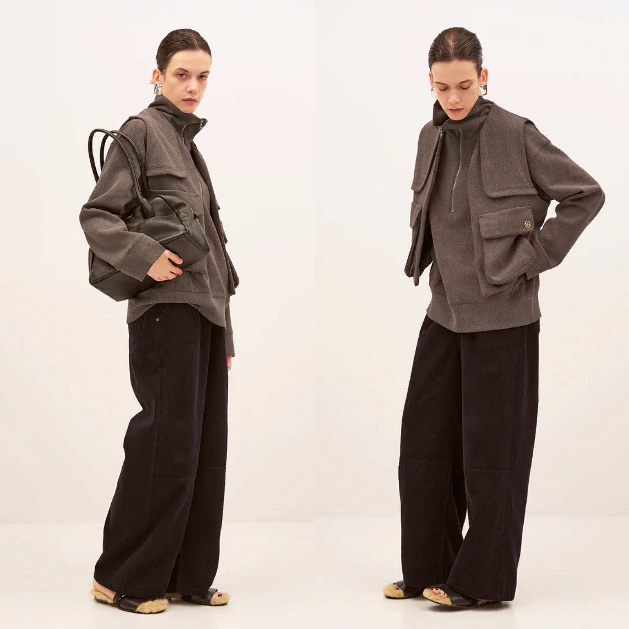 ゆったりめのサイジングで、中肉のカットソーやニットにもレイヤードしやすく、同素材のプルオーバーやワンピースとセットでも着ていただけるアイテムです。