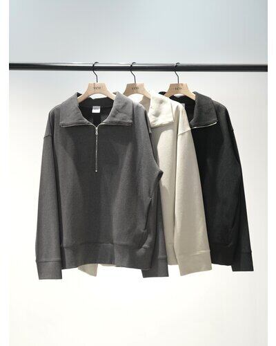 色褪せたような加工感がポイントの、しっかりと目の詰まったリブを使用したハーフジッププルオーバーです。