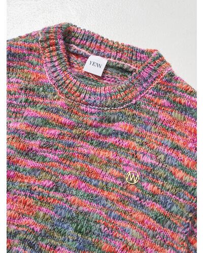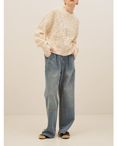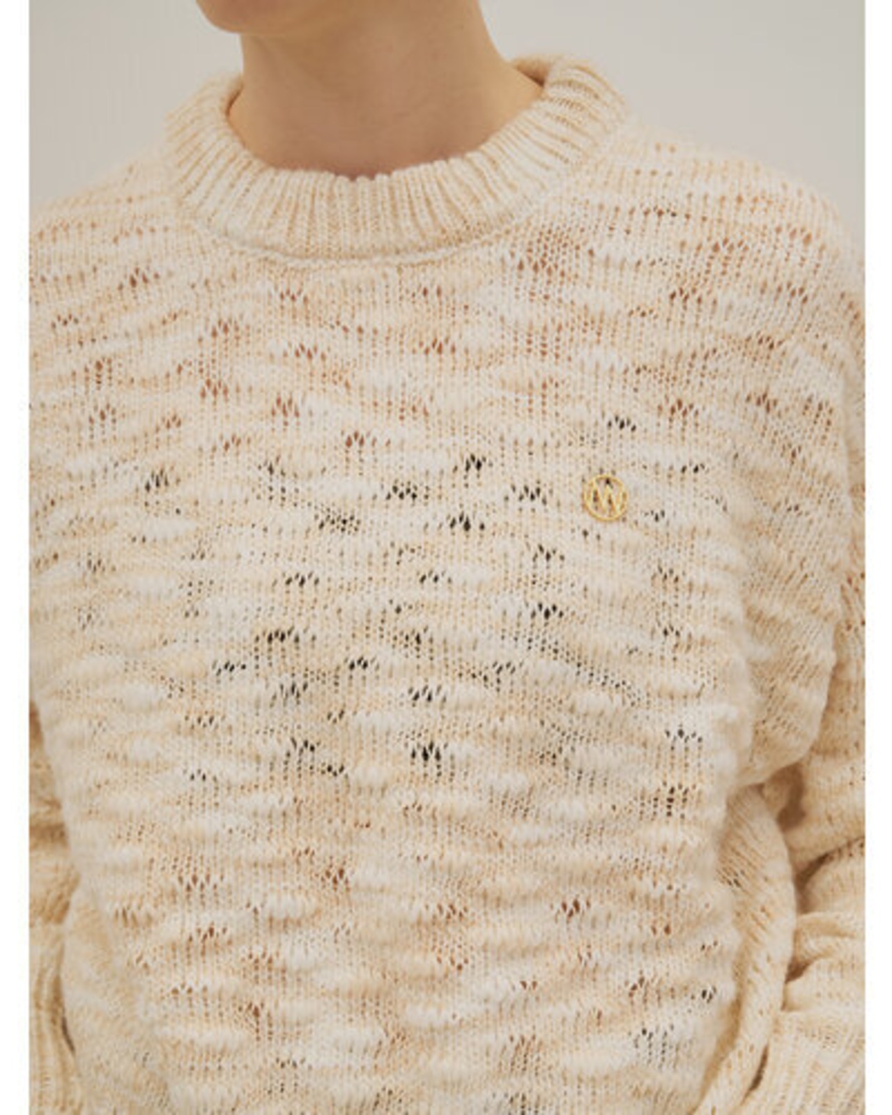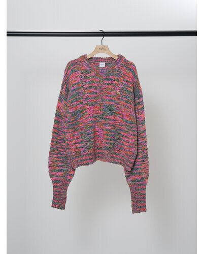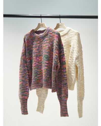 ミックスカラーが特徴のスペースダイの糸を、スラブをいかしたポコポコとした特殊な編み地にすることで、表情豊かに仕上げたニットプルオーバーです。