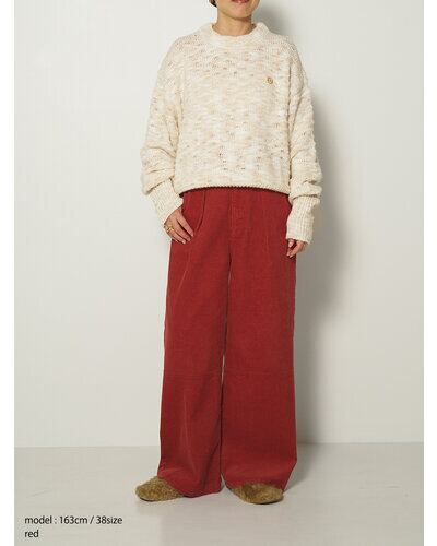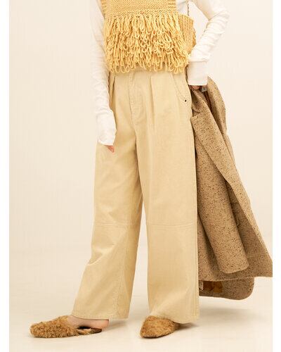 秋冬の定番素材、コーデュロイを使ったワイドパンツです。