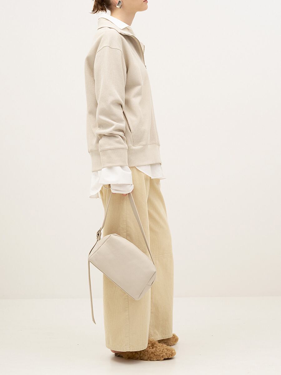 角の無い丸みのあるフォルムがポイントのクロスボディバッグです。