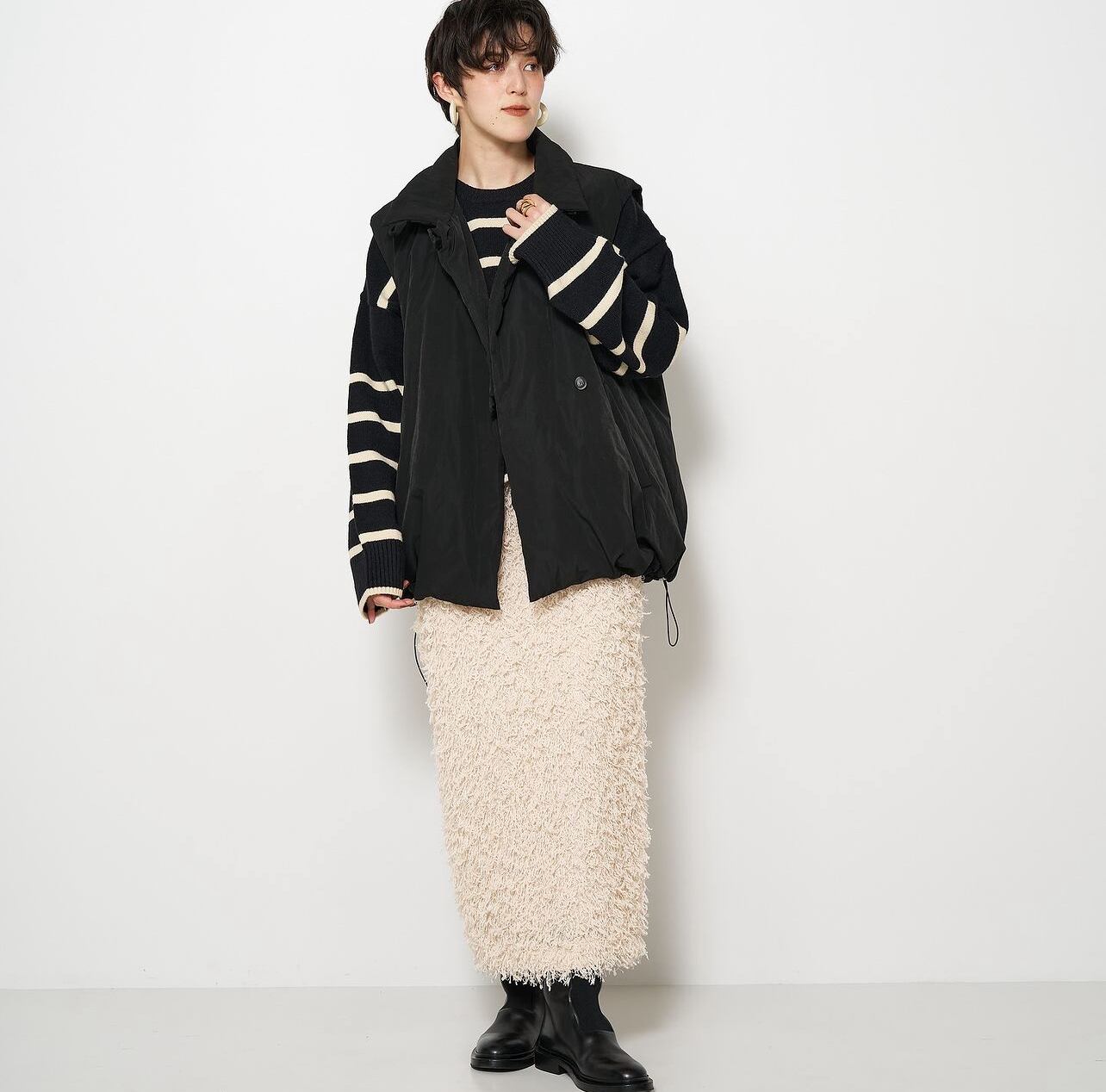 裾にはドロストを入れ、シルエット変化もできるアイテムです。
