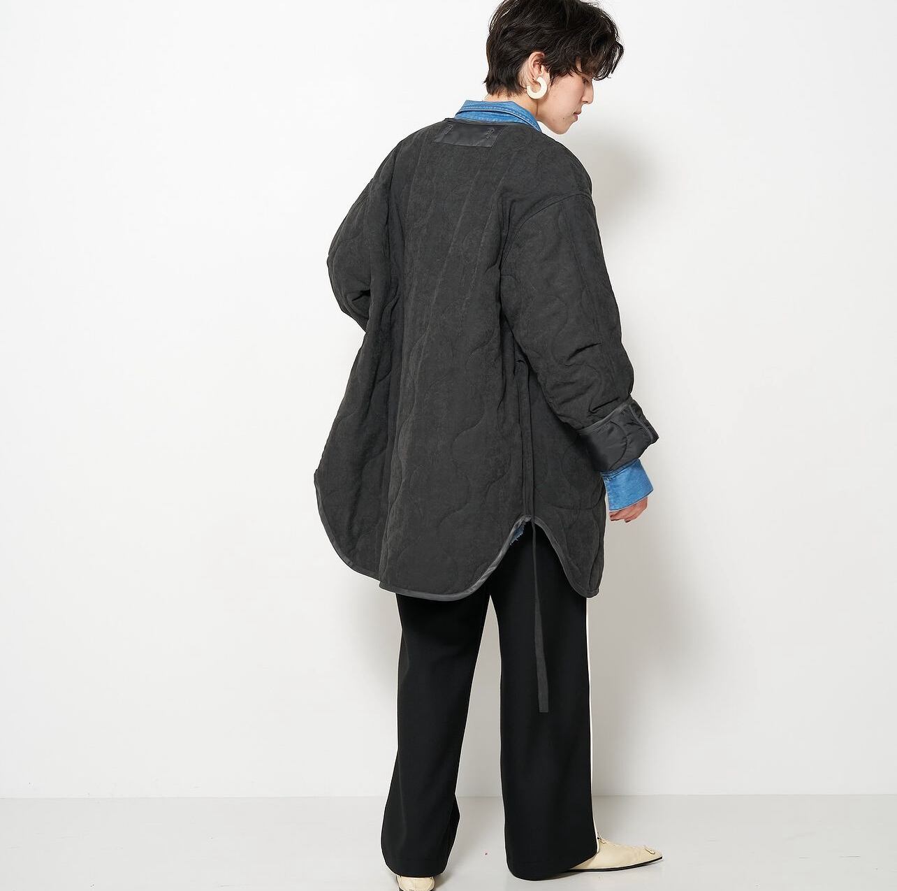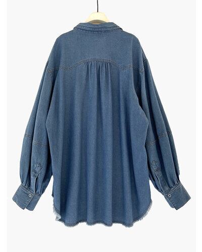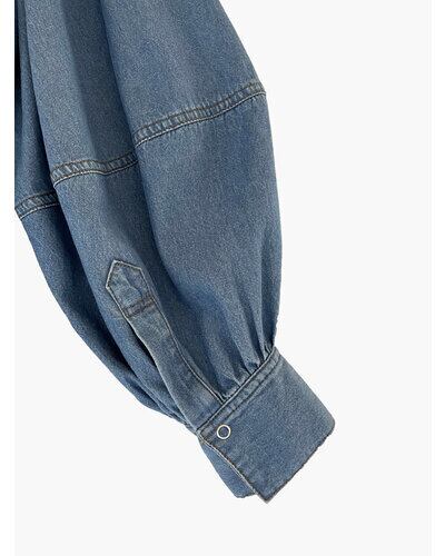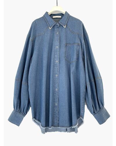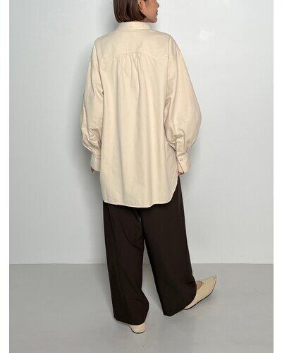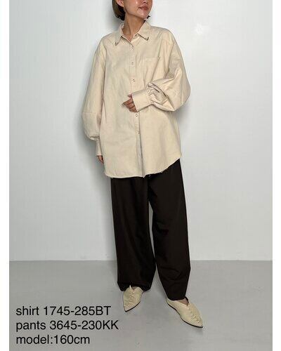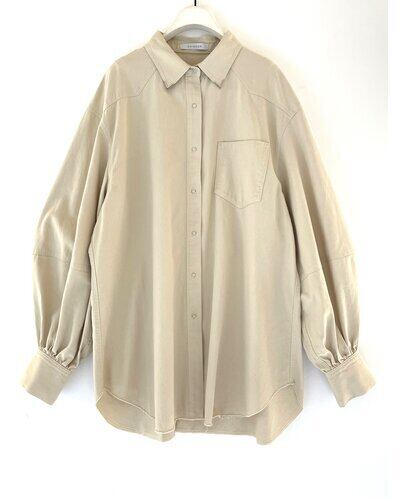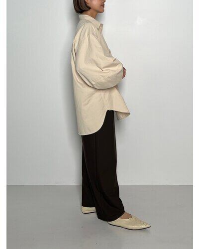 衿にシルバーのカラーチップを施したルーズシャツ。
