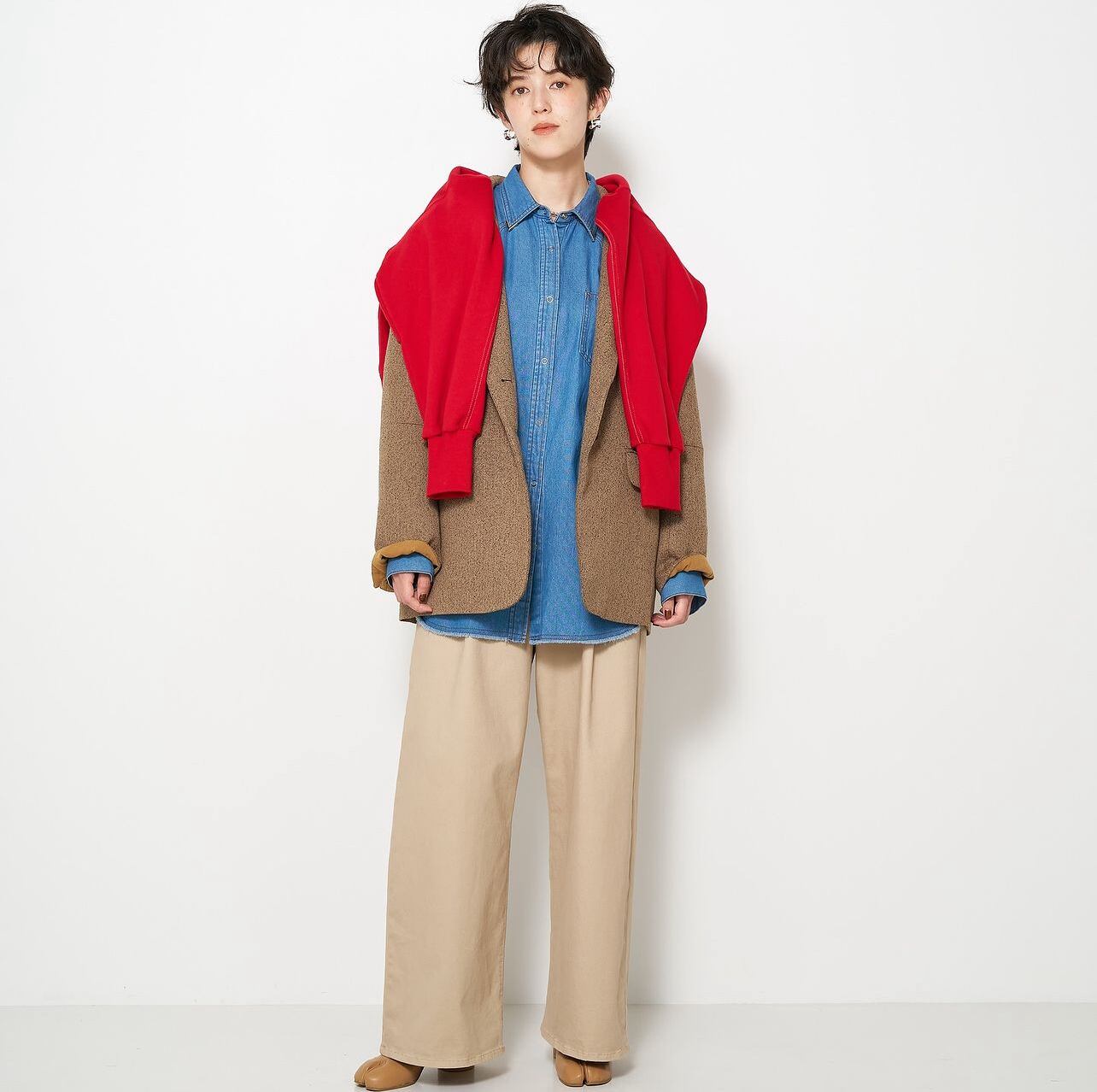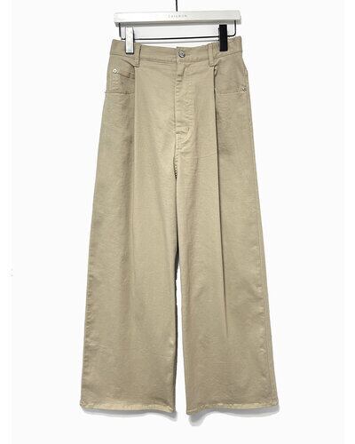 ストーンバイオ加工を施すことで生地を柔らかくし女性らしく仕上げました。ストレッチ性の高い素材を採用することでリラックスな着心地を実感していただけます。ハイウエストの設計で美脚効果をもたらします。