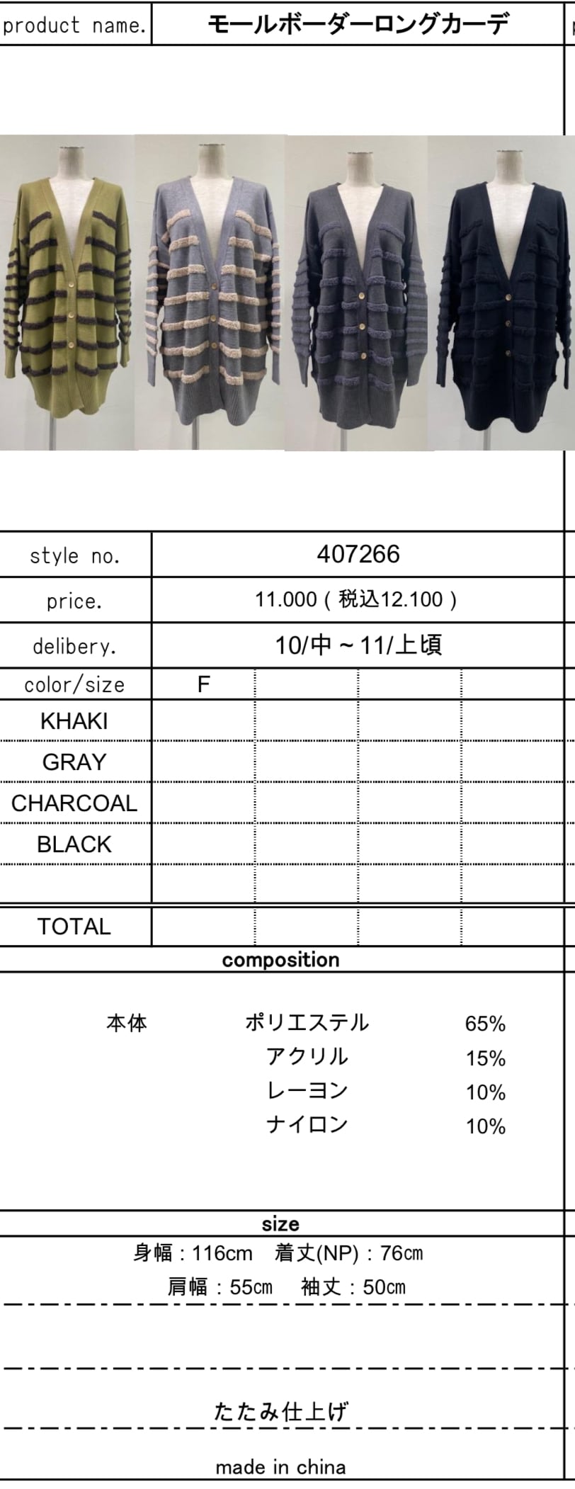 ⭐︎予約販売【 CYAN TOKYO 】モールボーダーロングカーデ (407266) 11月お届け