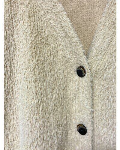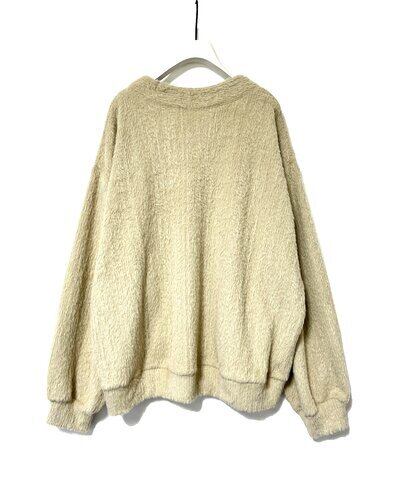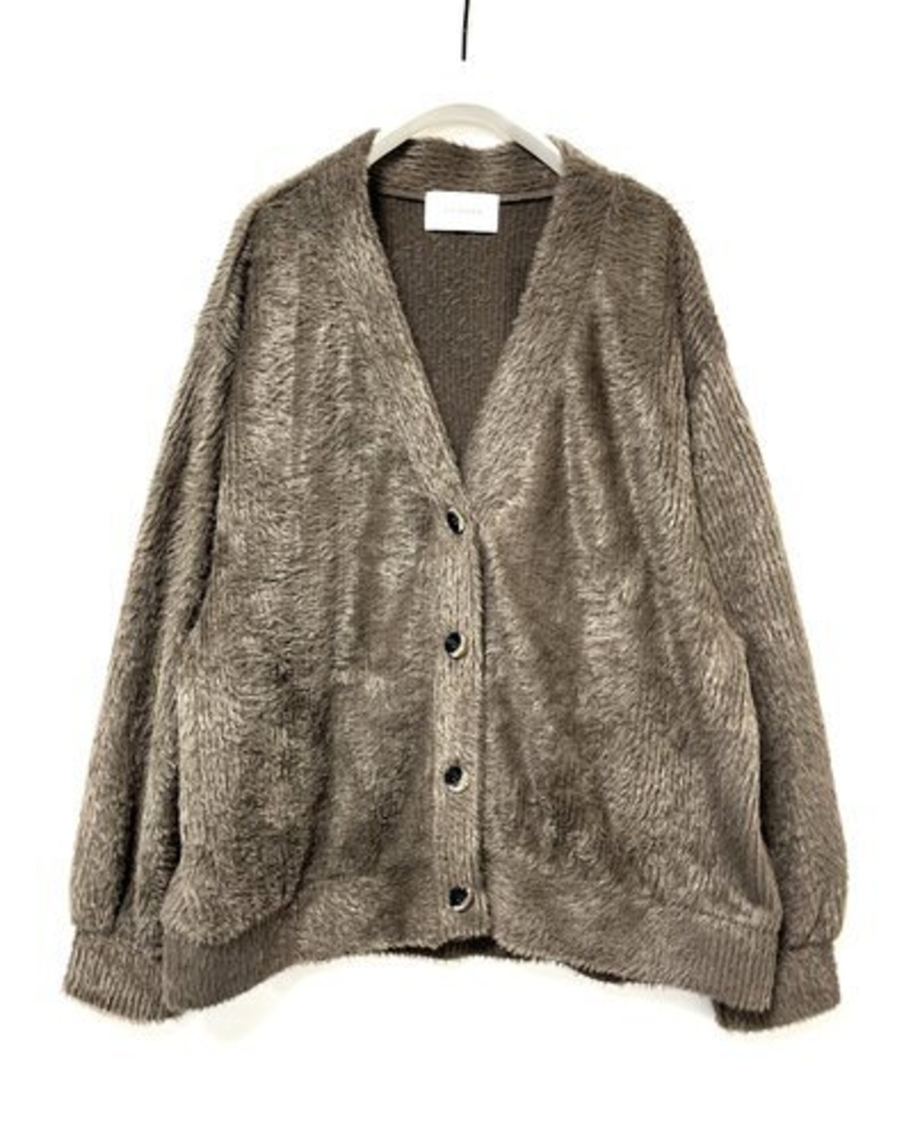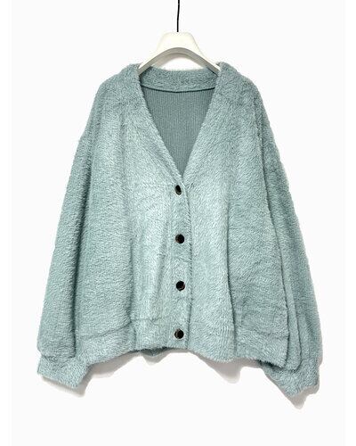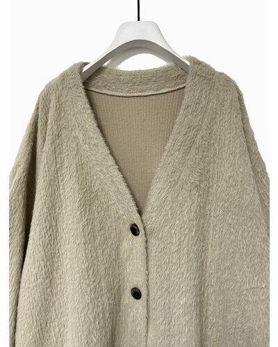 温かみのあるシャギーニットソーを使用した、カーディガンタイプです。