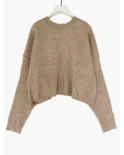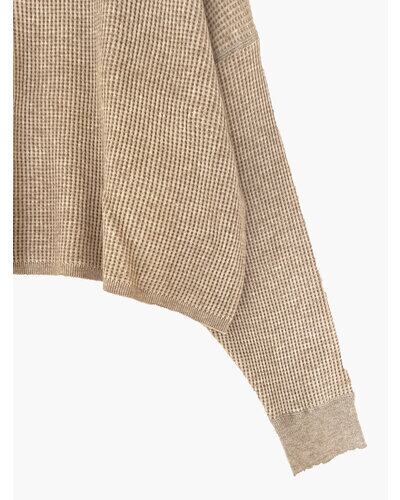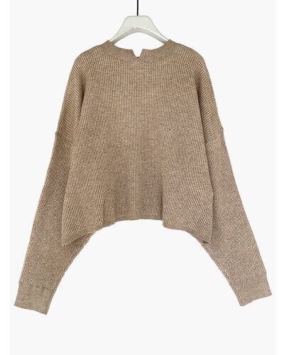 もちもちしたタッチが特徴の糸を使用したサーマル編みニットプルオーバー。