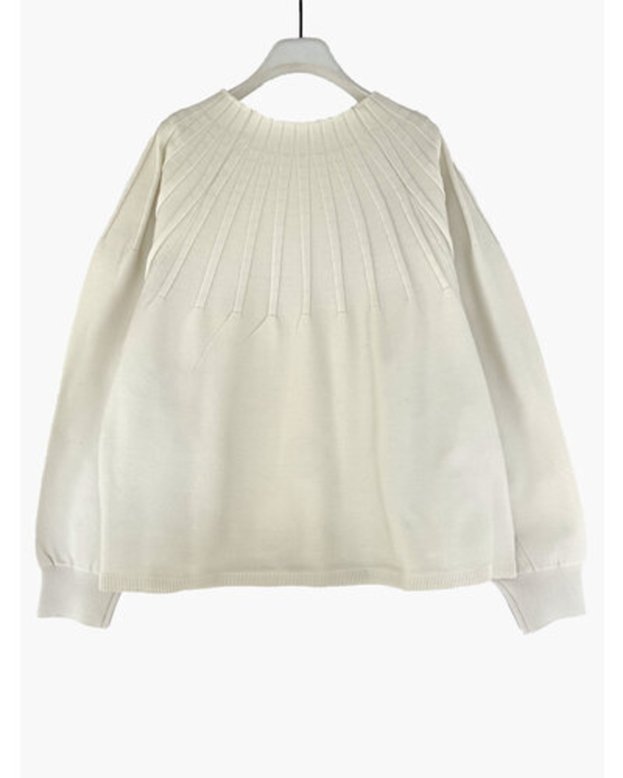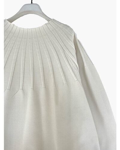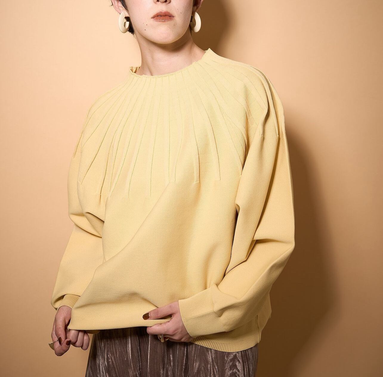 ポリエステル100%の糸をしっかり編む事で、まるでスポンジの様な何とも言えない弾力が特徴の素材を使用したニットプルオーバー。