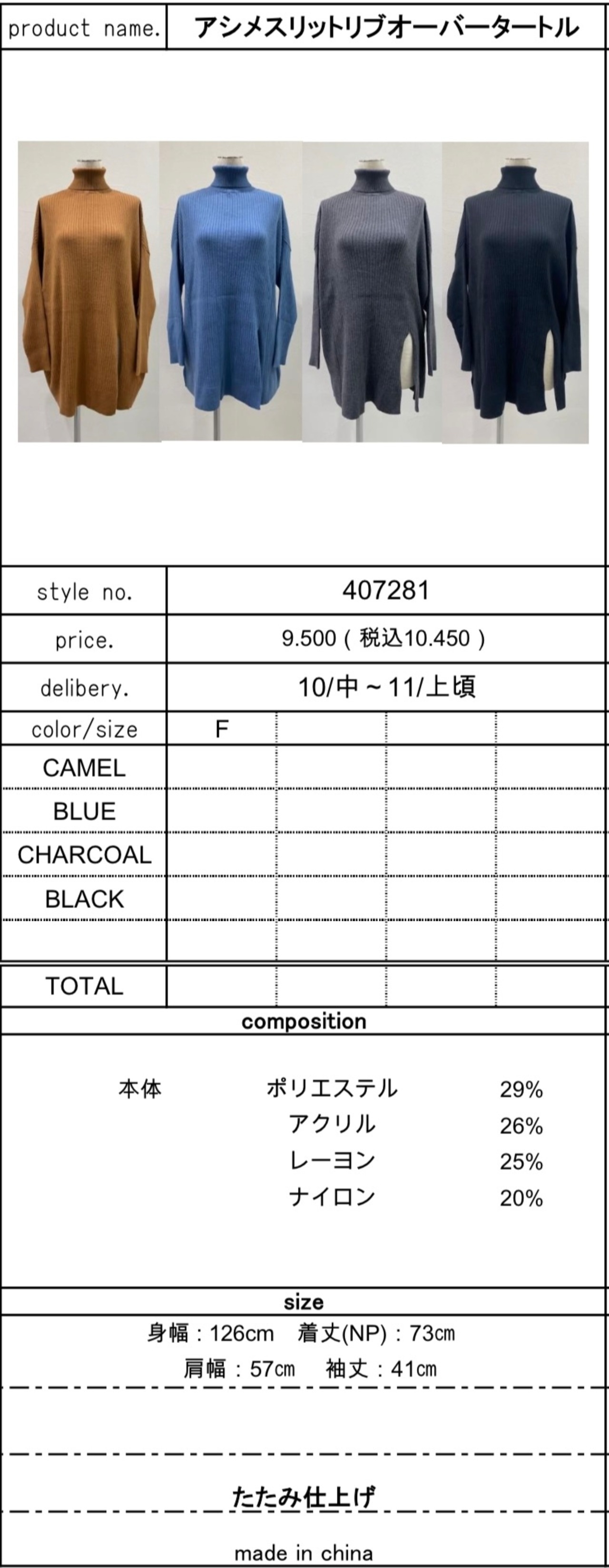 ⭐︎予約販売【 CYAN TOKYO 】アシメスリットリブオーバータートル (407281) 11月お届け