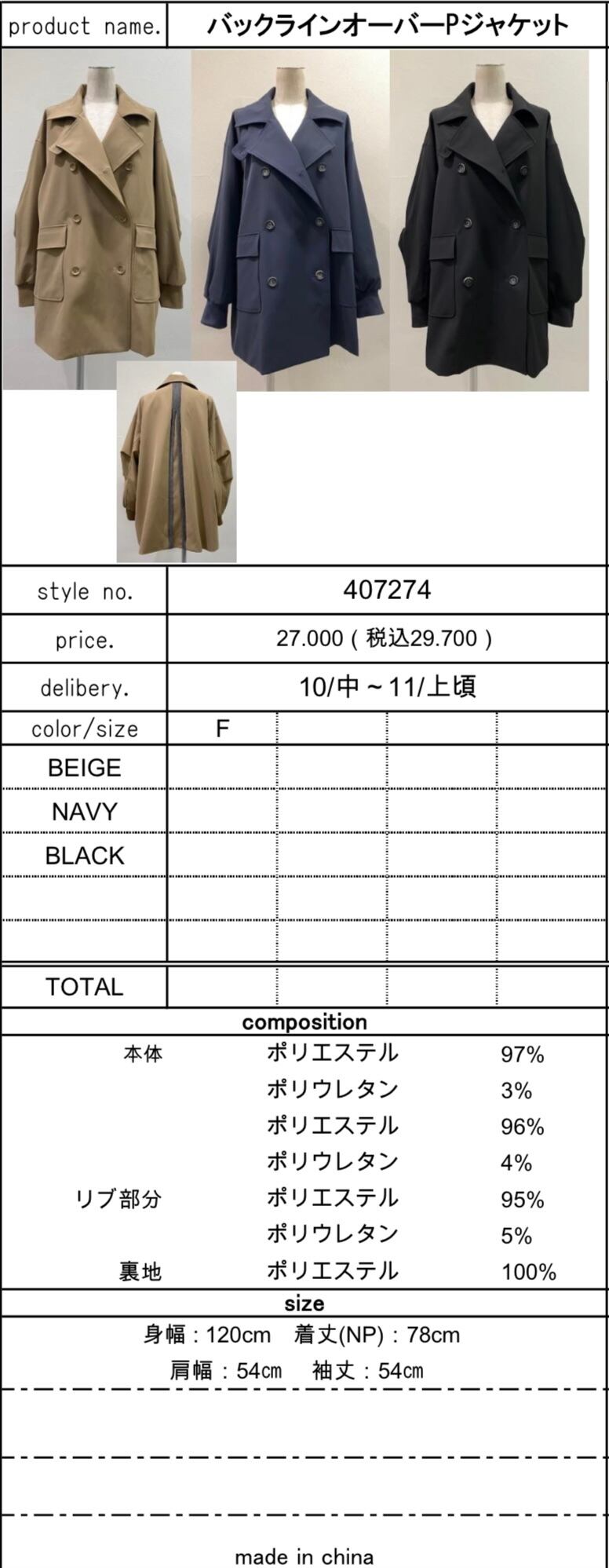 ⭐︎予約販売【 CYAN TOKYO 】バックラインオーバーPジャケッ (407274) 11月お届け
