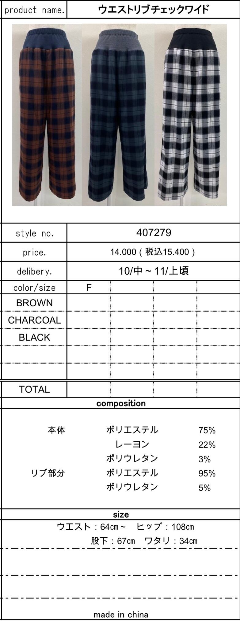 ⭐︎予約販売【 CYAN TOKYO 】ウエストリブチェックワイド (407279) 11月お届け