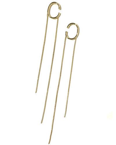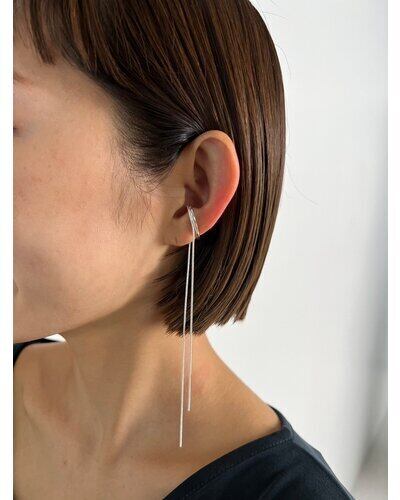 耳に沿うシンプルな丸線イヤカフにしなやかに煌めくロングチェーンが施された上品なデザイン。